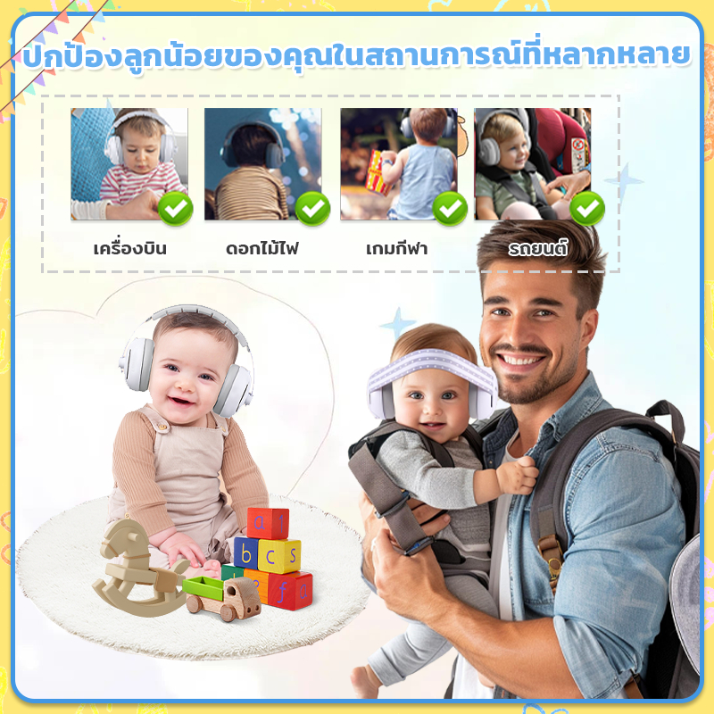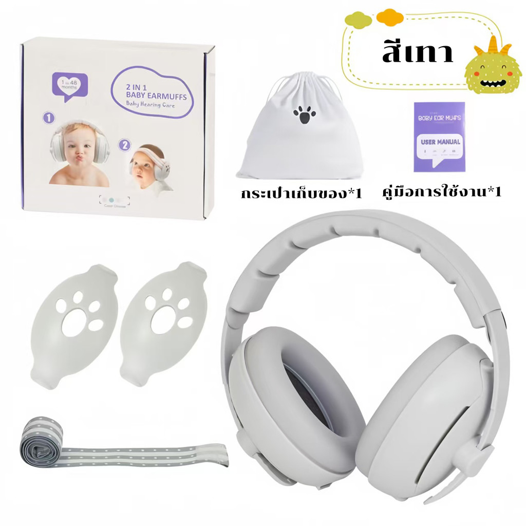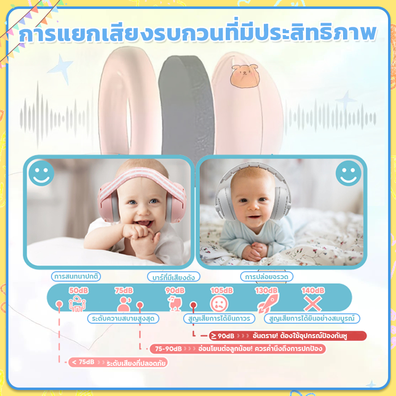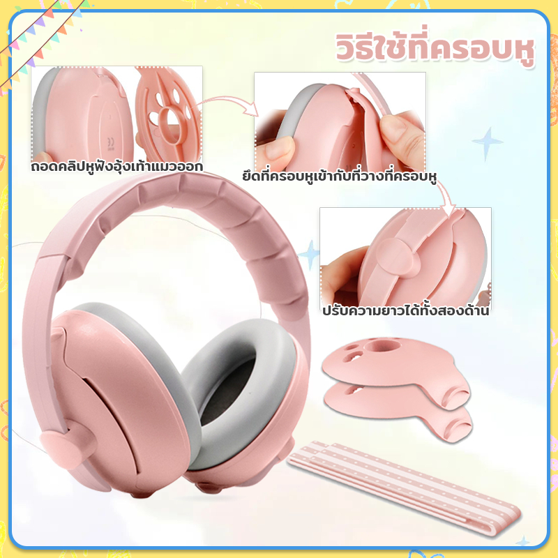 ที่ครอบหูเด็ก ที่ครอบหูเด็กลดเสียง Earmuffs เด็ก ที่ปิดหูเด็กแรกเกิดกันเสียงรบกวน เหมาะสำหรับ 1-36 เดือน
