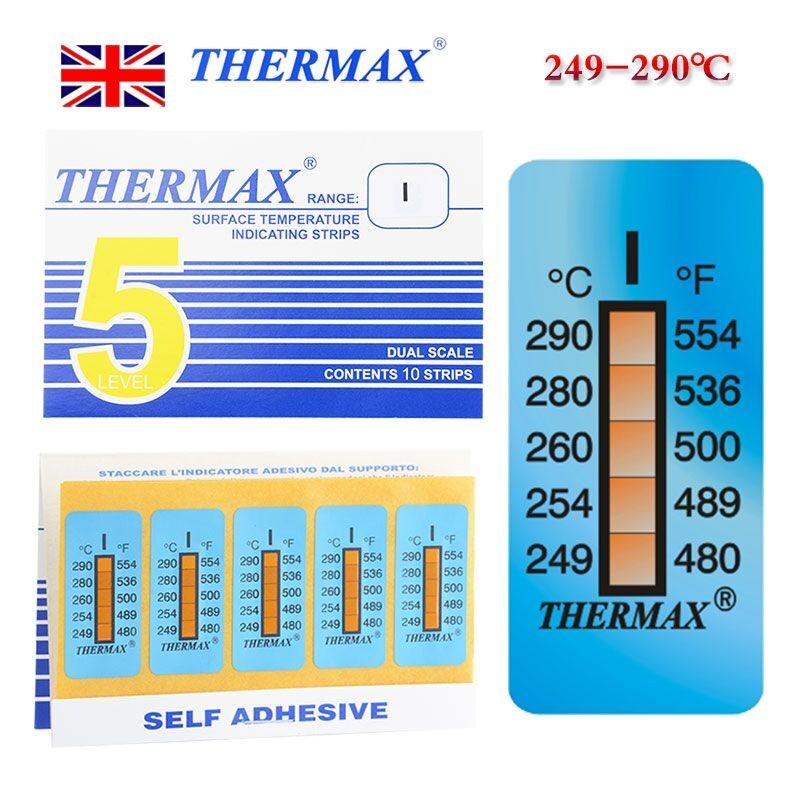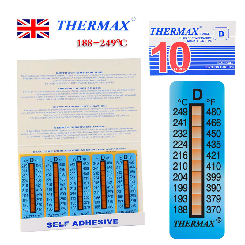 เครื่องวัดอุณหภูมิกระดาษ British thermax Thermal Sensitive Temperature Label Sticker Temperature Strip Sticker Temperature 8 Grids 10 Grids Reversible