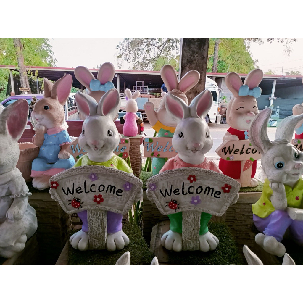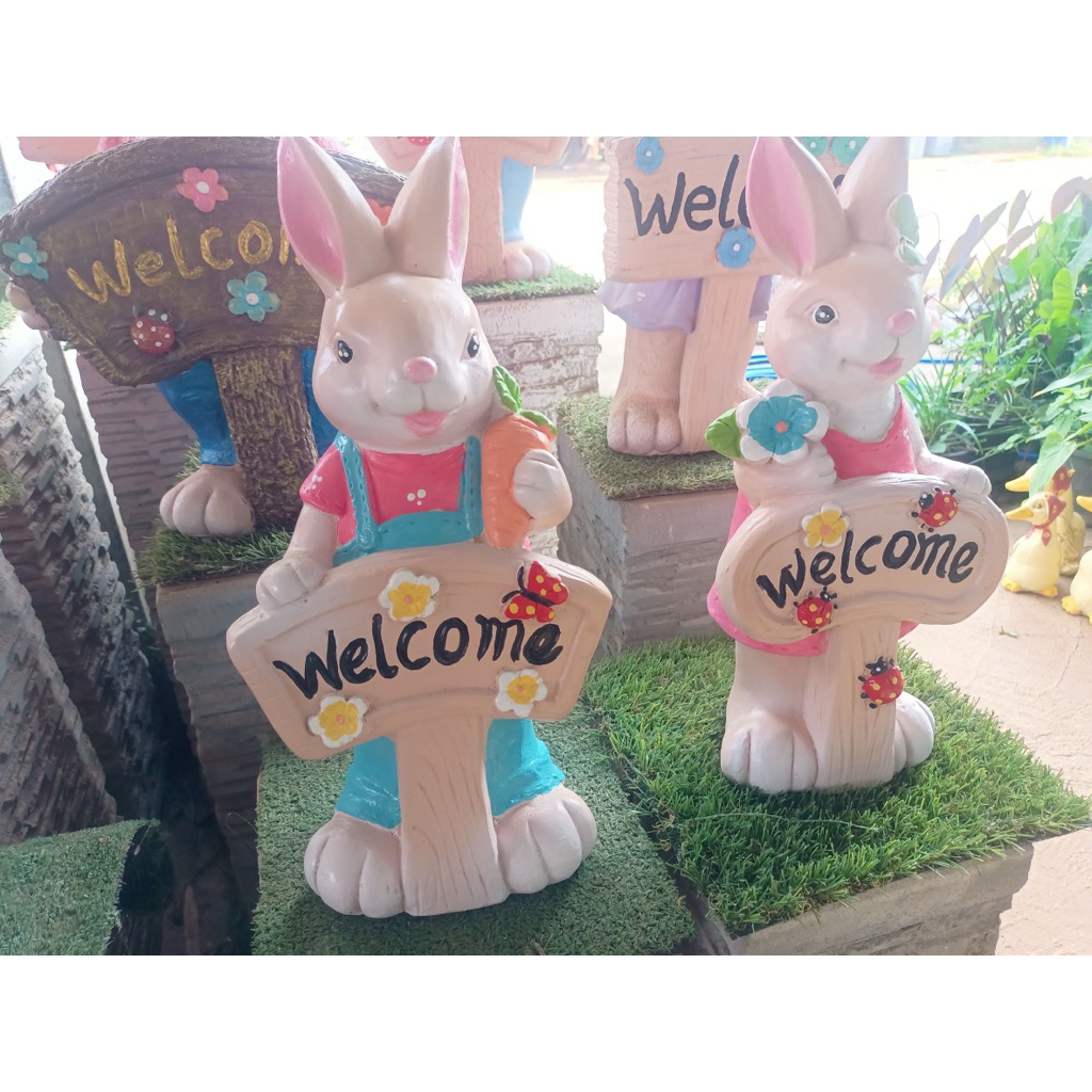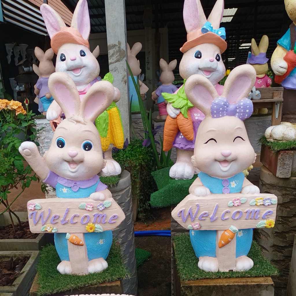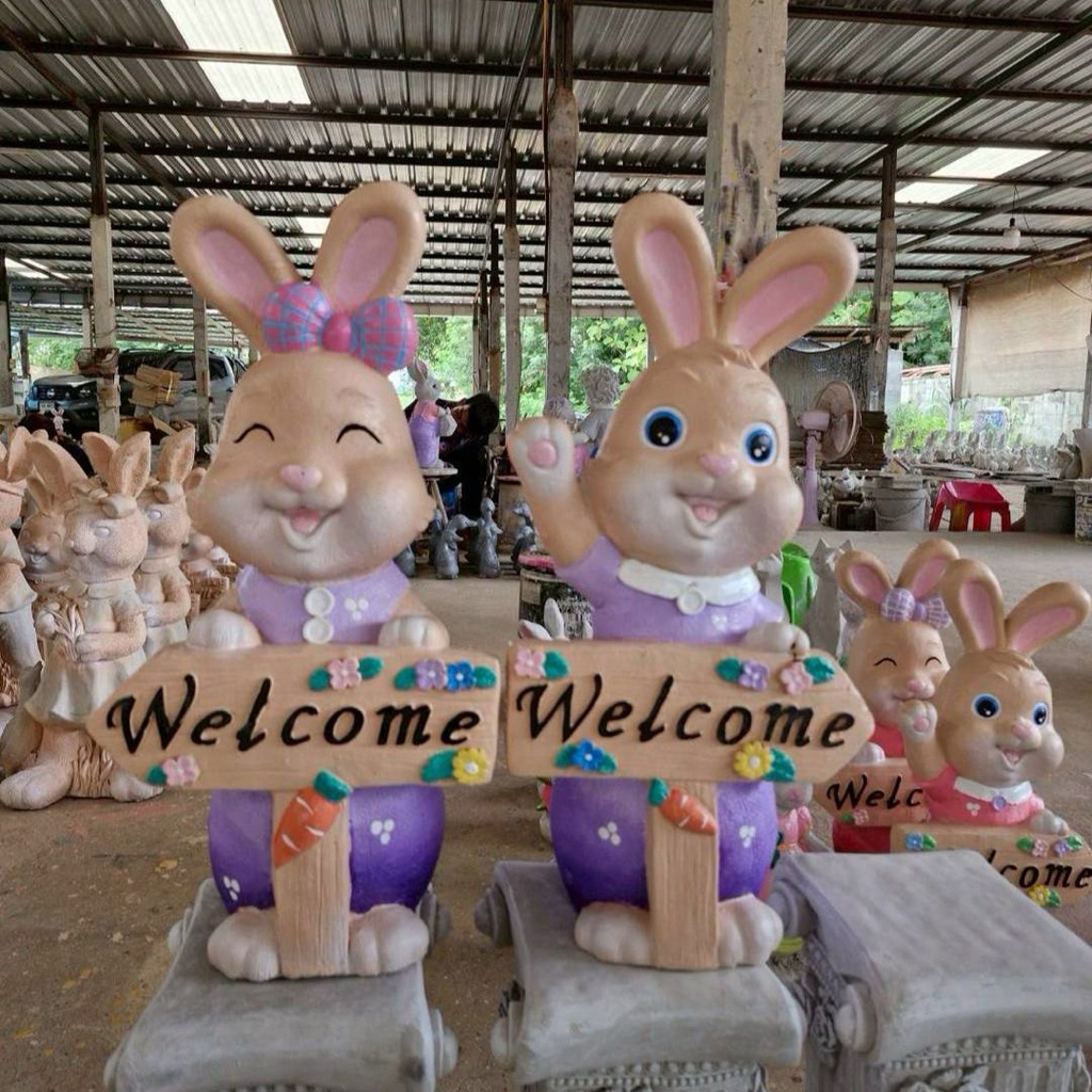 ปูนปั้นกระต่ายหนุ่มสาวป้าย welcomeตกแต่งบ้านสวนสถานที่ร้านค้าคาเฟ่แนวโมเดิร์นมีหลายสี