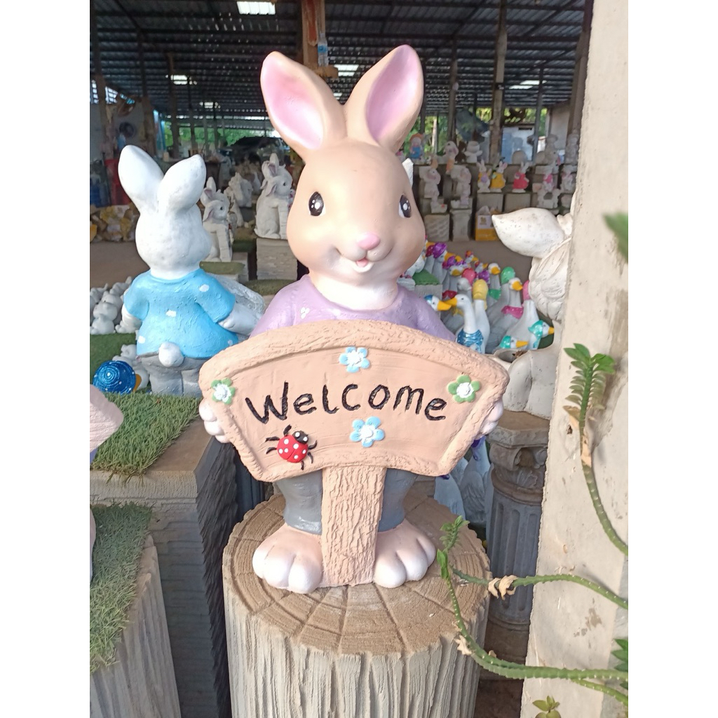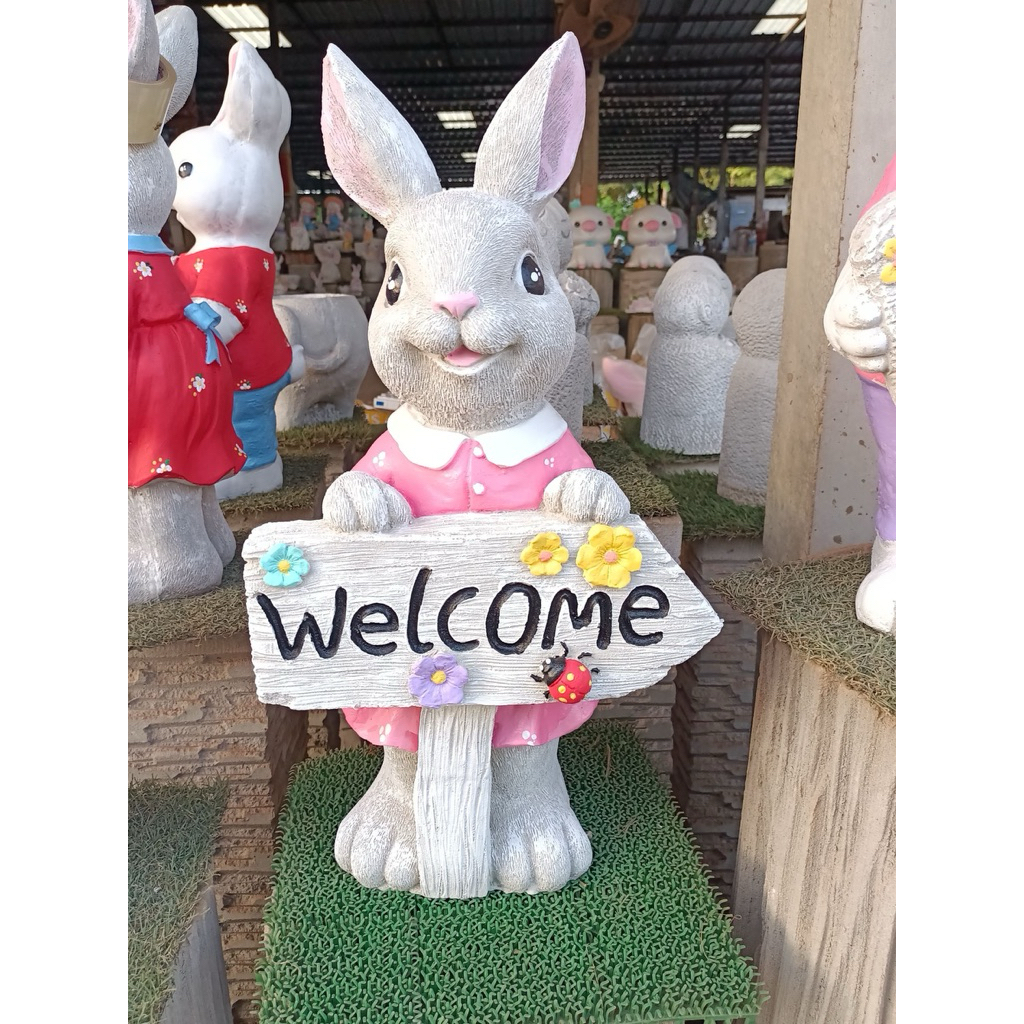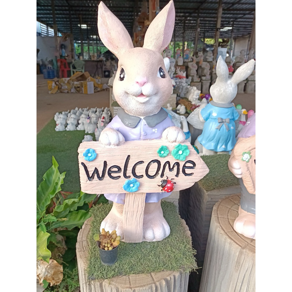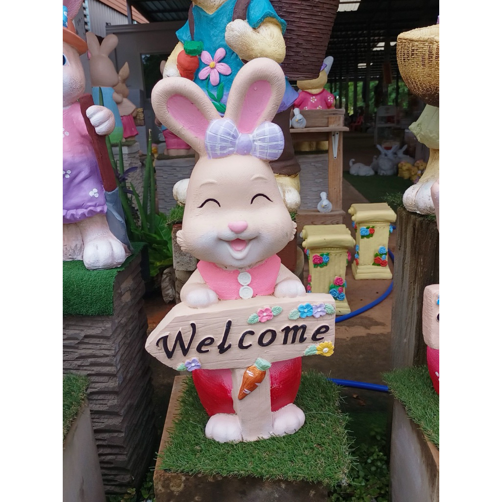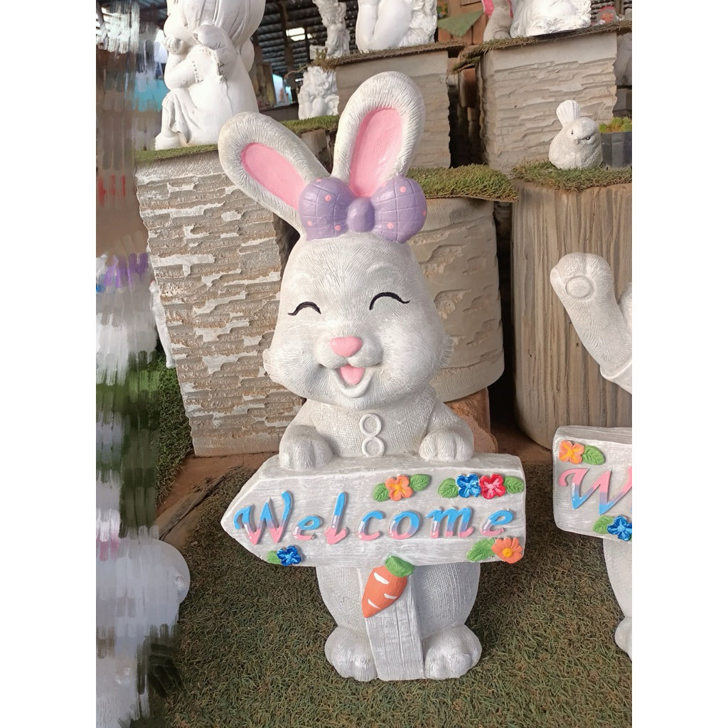 ปูนปั้นกระต่ายหนุ่มสาวป้าย welcomeตกแต่งบ้านสวนสถานที่ร้านค้าคาเฟ่แนวโมเดิร์นมีหลายสี