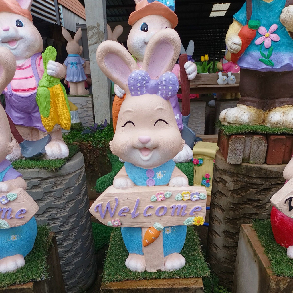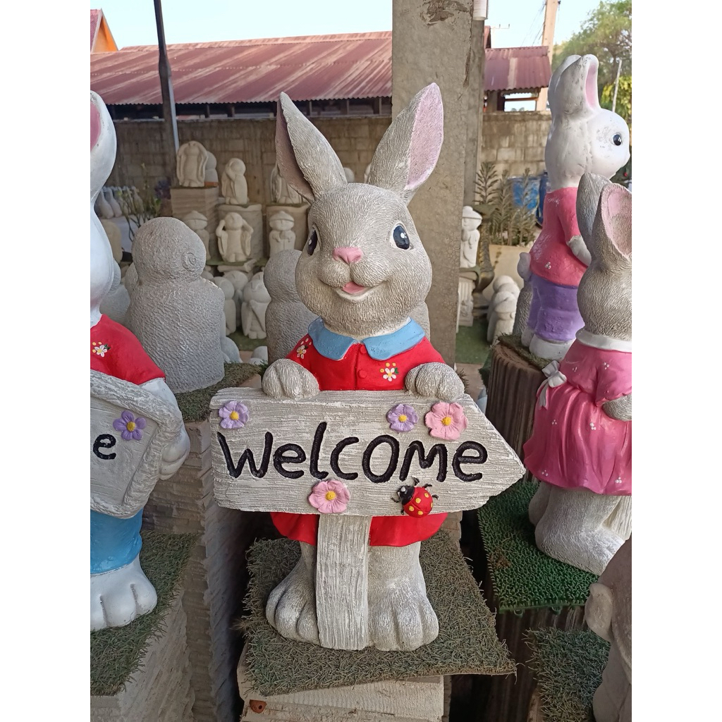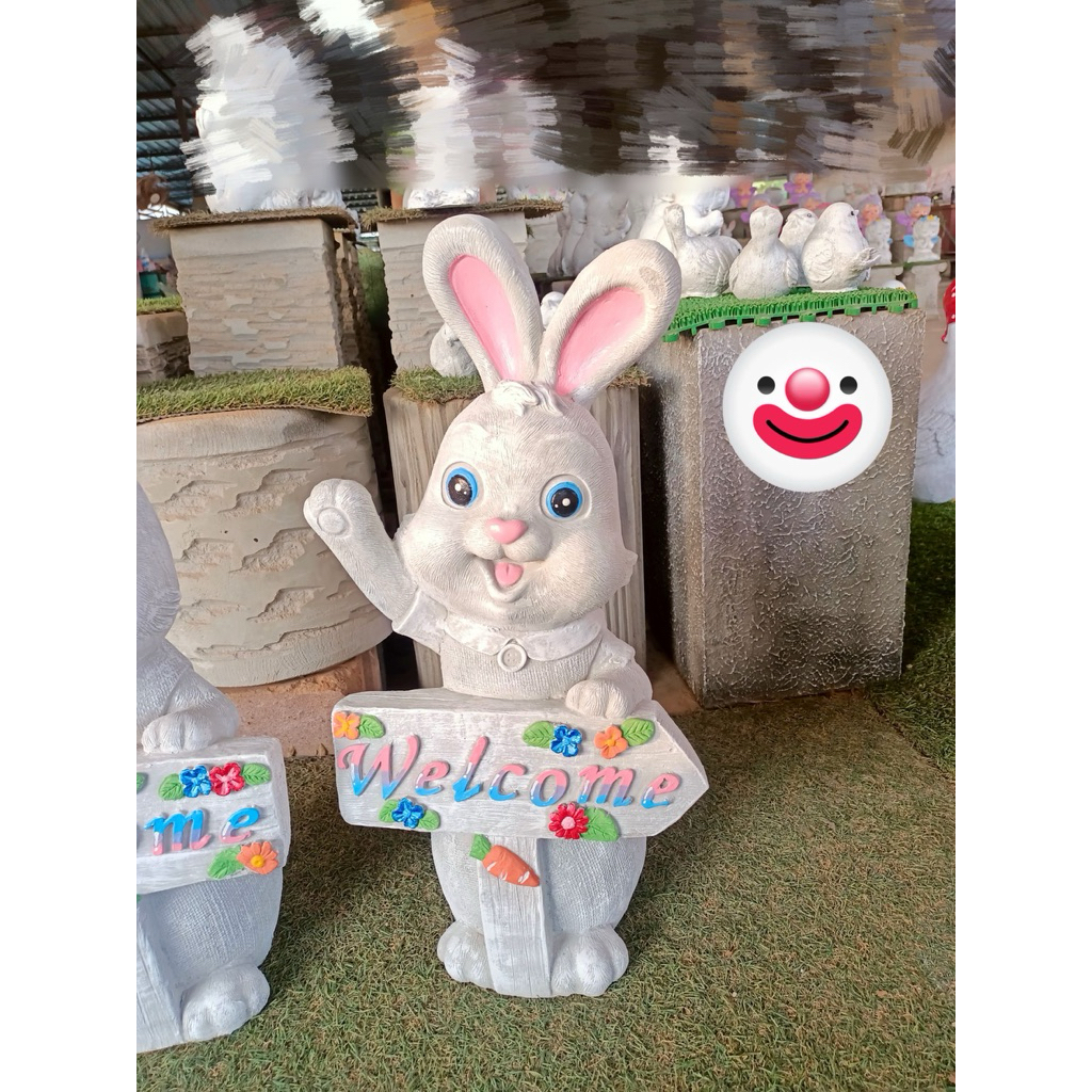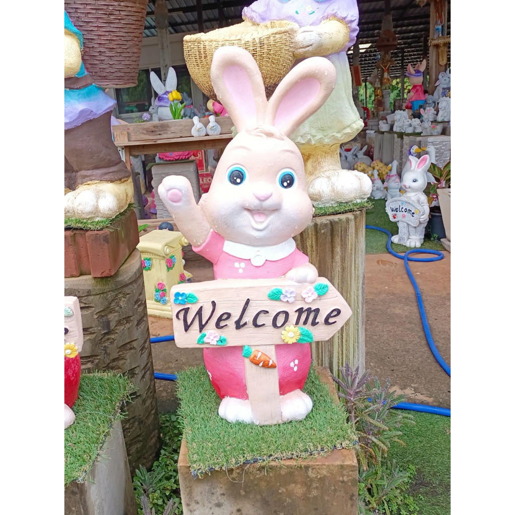ปูนปั้นกระต่ายหนุ่มสาวป้าย welcomeตกแต่งบ้านสวนสถานที่ร้านค้าคาเฟ่แนวโมเดิร์นมีหลายสี