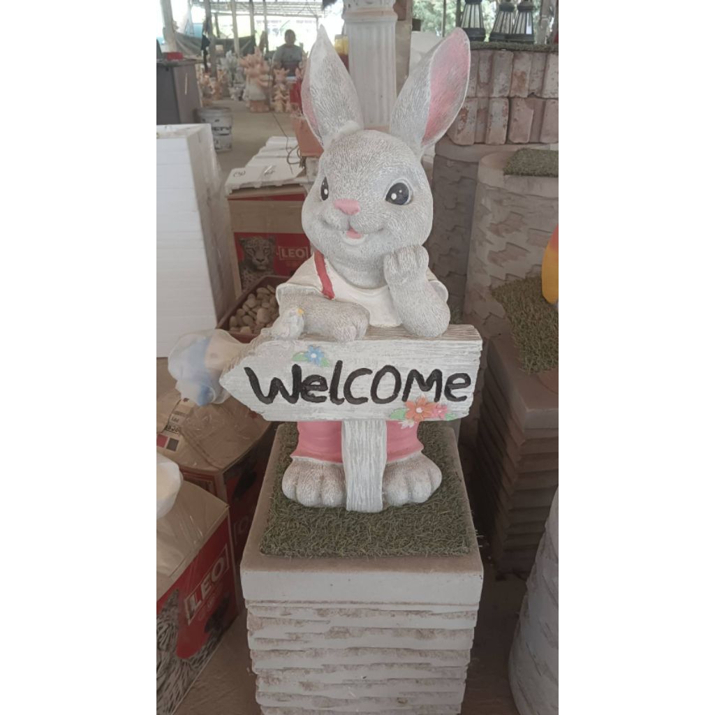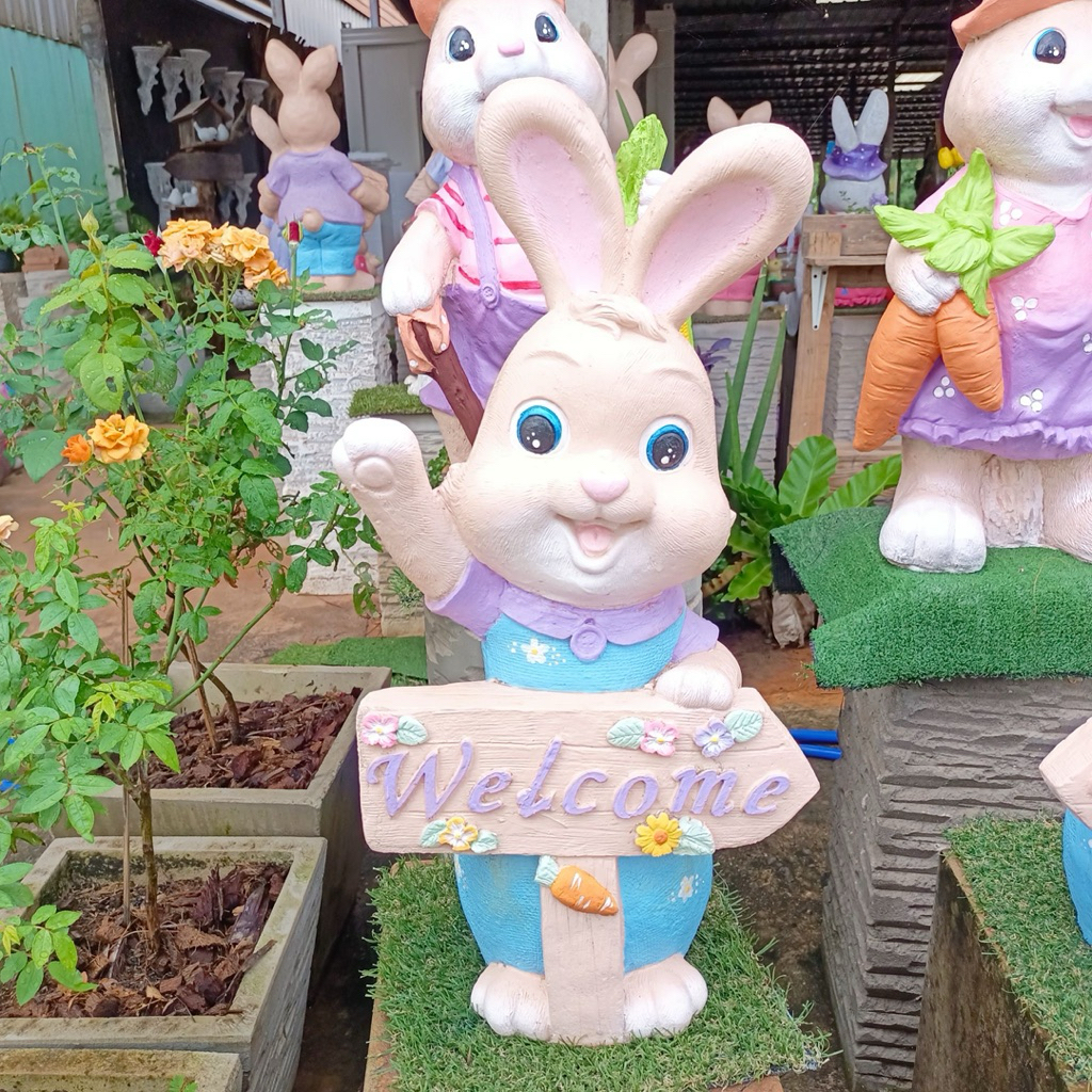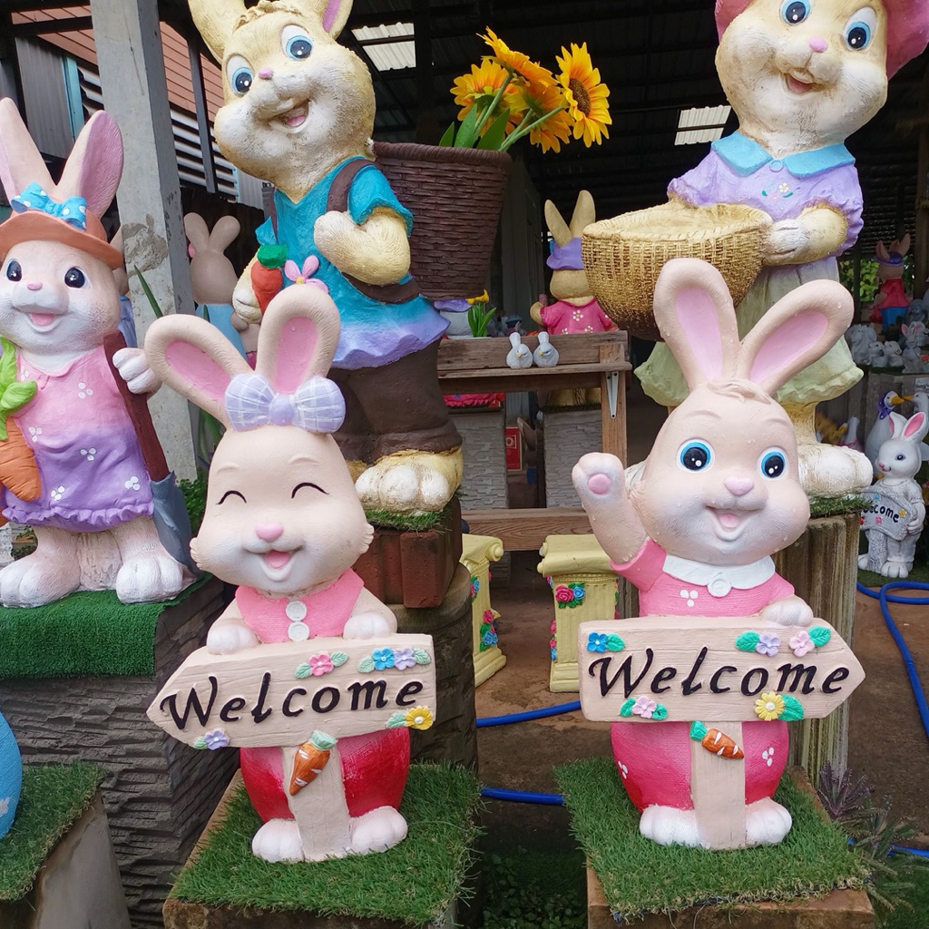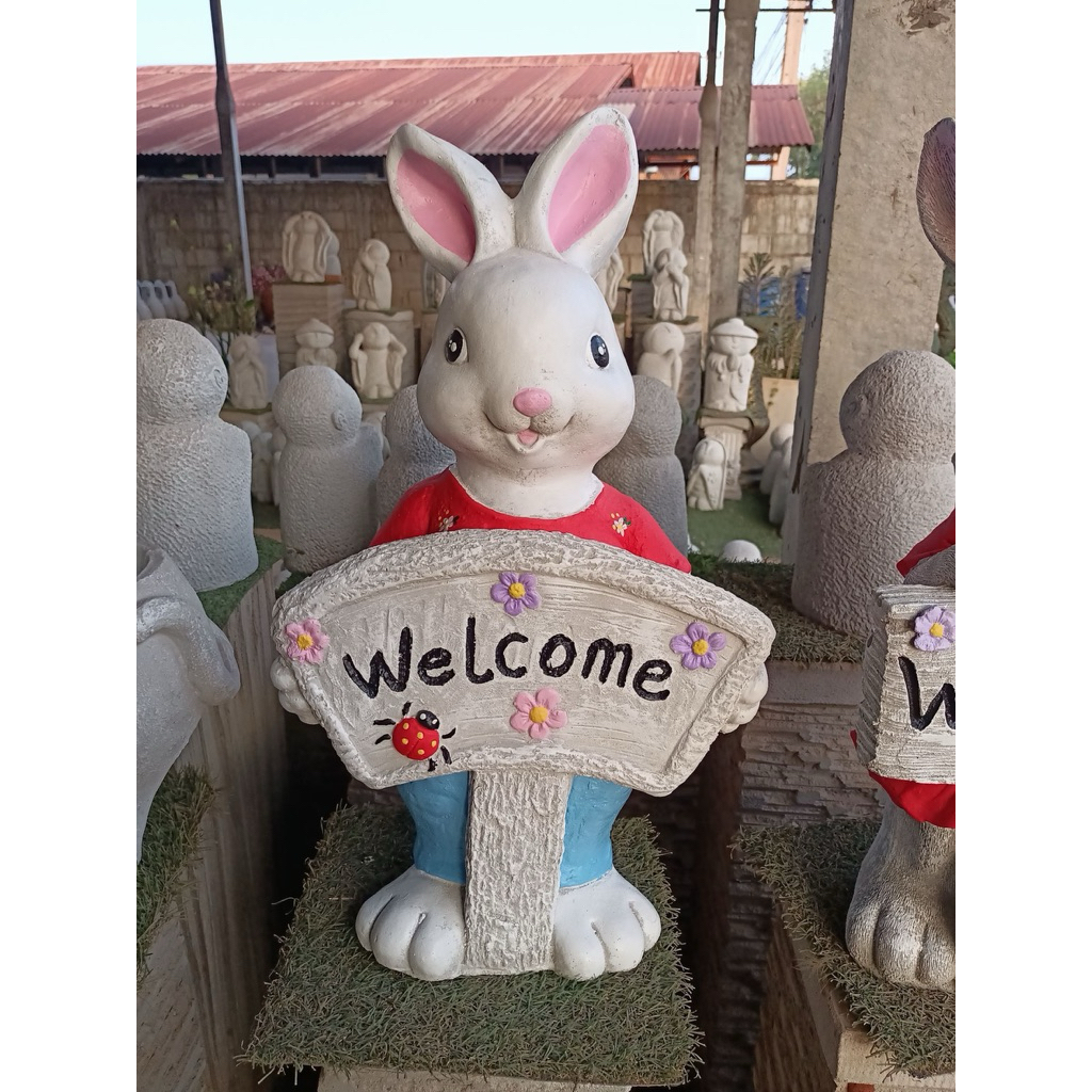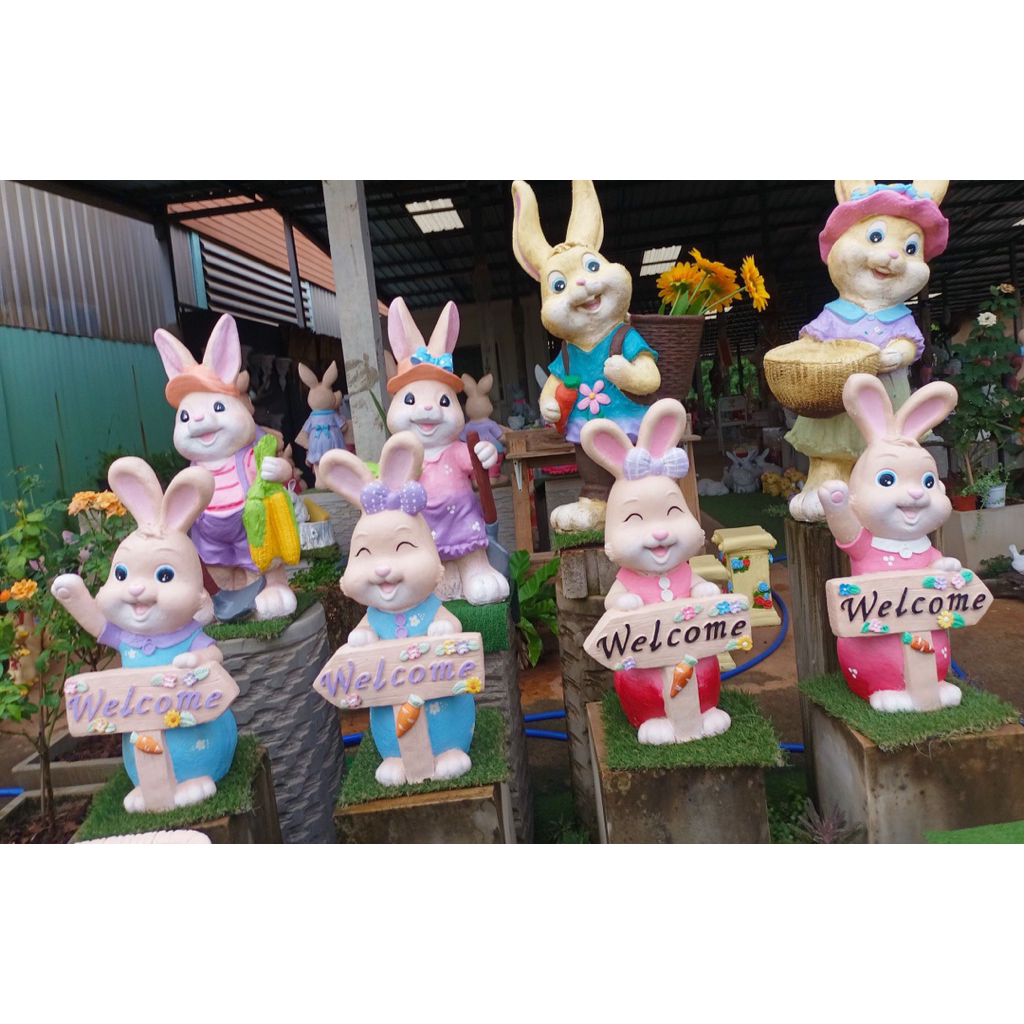 ปูนปั้นกระต่ายหนุ่มสาวป้าย welcomeตกแต่งบ้านสวนสถานที่ร้านค้าคาเฟ่แนวโมเดิร์นมีหลายสี