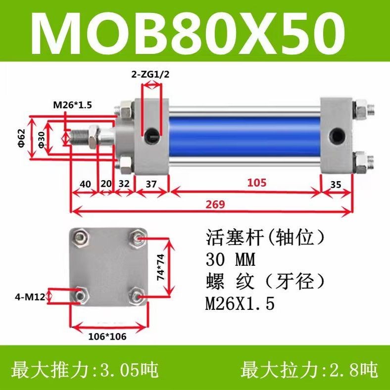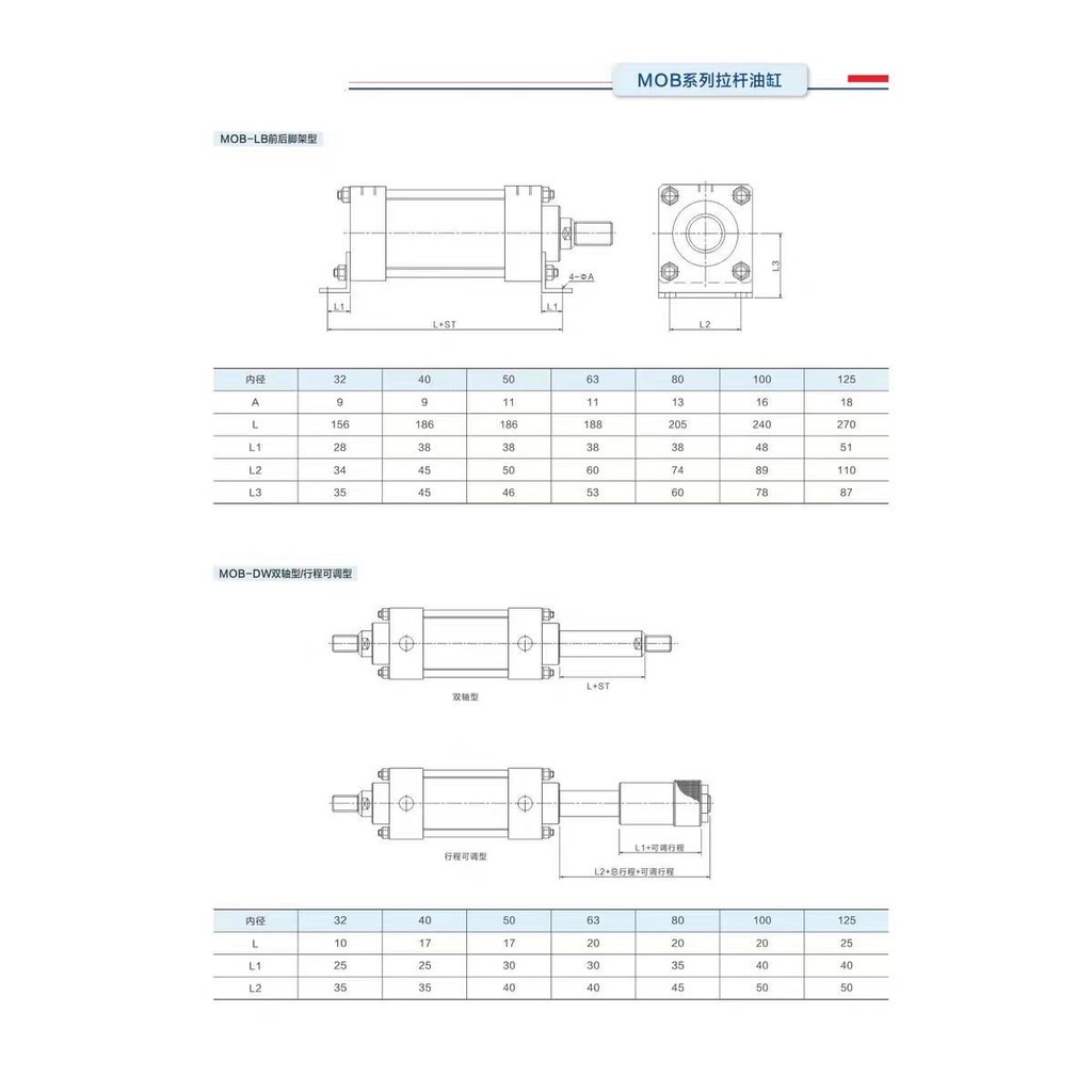🍀กระบอกน้ำมันเบา MOB 32/40/50/63/80/100-50/150/200-Fa กระบอกไฮดรอลิกสองทาง