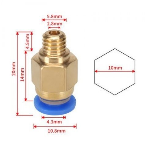 อุปกรณ์ 3D ปริ้นเตอร์ข้อต่อลมด่วน PC4 เกลียว M5 M6 M10 ข้อต่อตรง