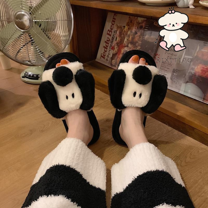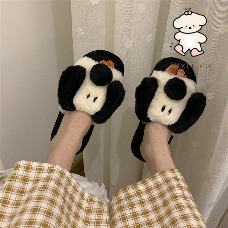 ฉี่ ฤดูใบไม้ร่วงฤดูหนาวสไตล์ใหม่แฟชั่น อิน สไตล์คู่รองเท้าแตะผ้าฝ้ายผู้หญิงอบอุ่นใช้ในบ้านตุ๊กตาน่ารักรองเท้าแต ะผ้าฝ้ายผู