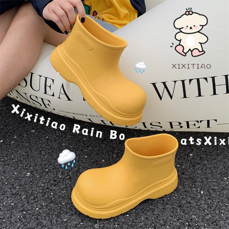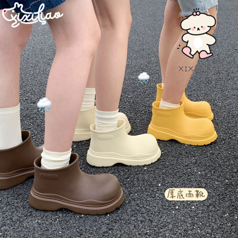 ฉี่เตียว รองเท้าบูทกันฝนฤดูร้อนผู้ใหญ่น่ารักพื้นนิ่มสไตล์ใหม่สาวแฟชั่นสวมใส่กลางแจ้ง
