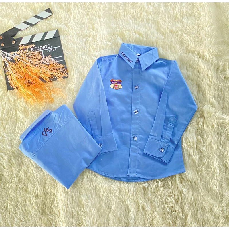 เสื้อเชิ้ตเด็กแขนยาวคอปกสีพื้น ผ้าอ๊อกฟรอด ผ้าดีใส่สบาย