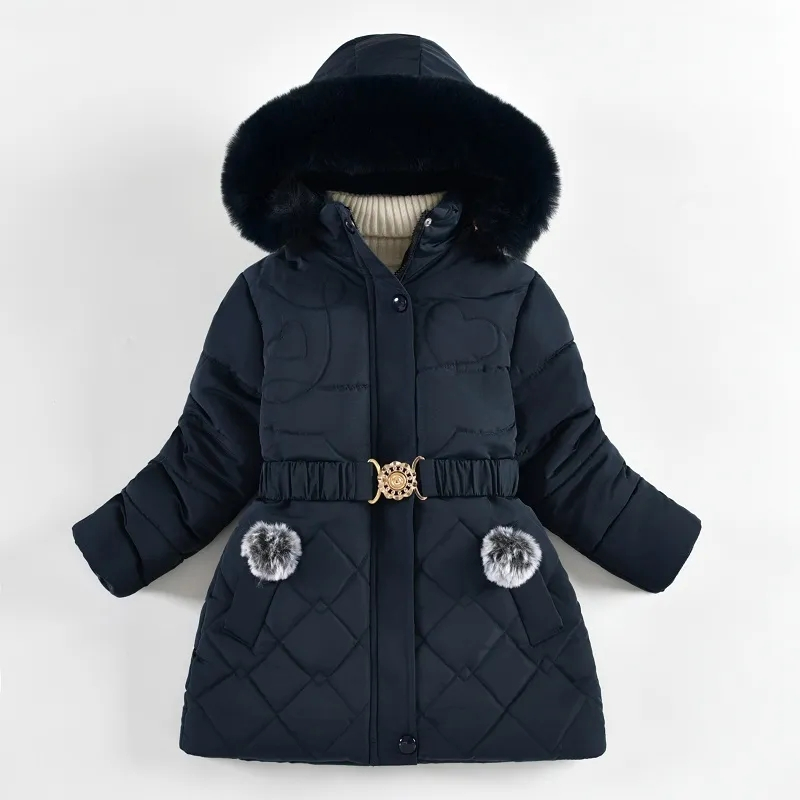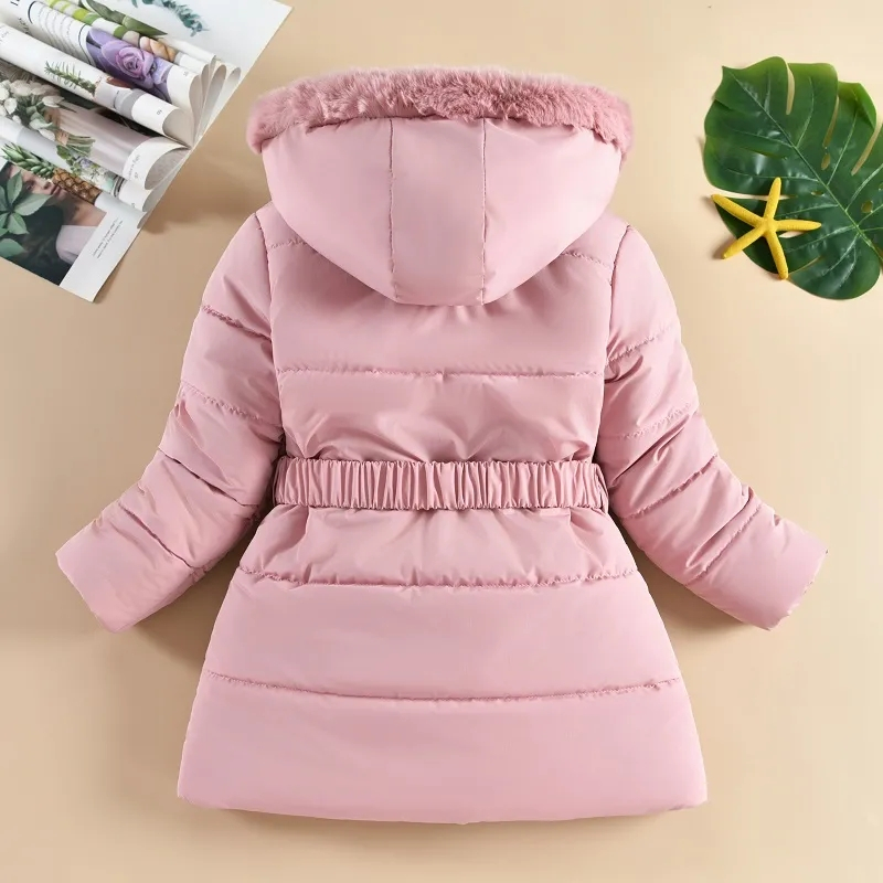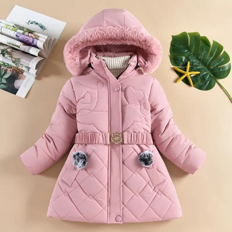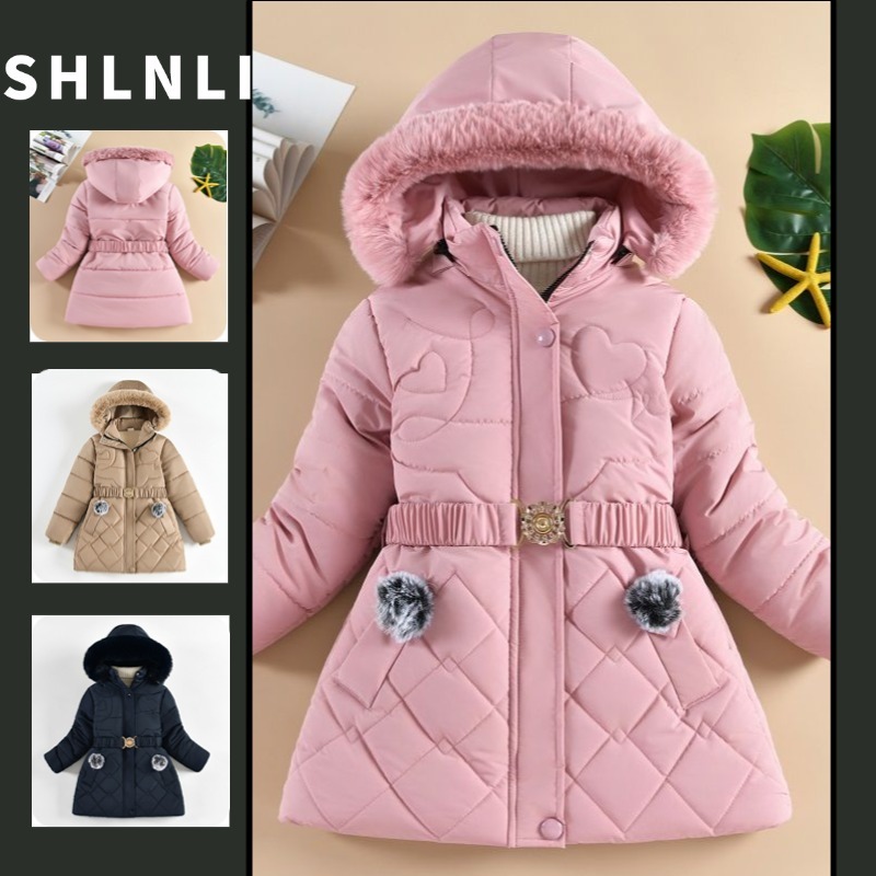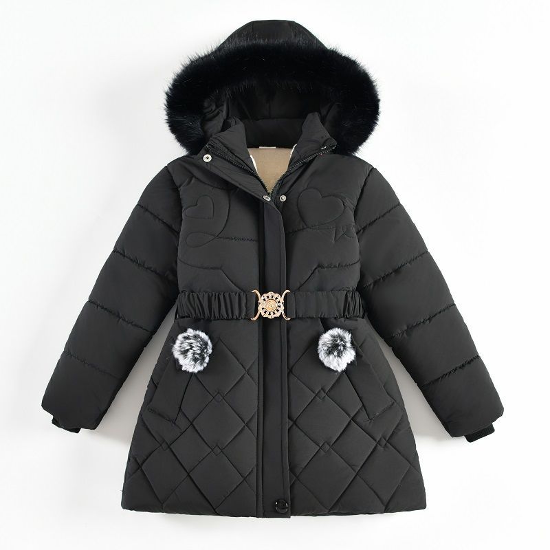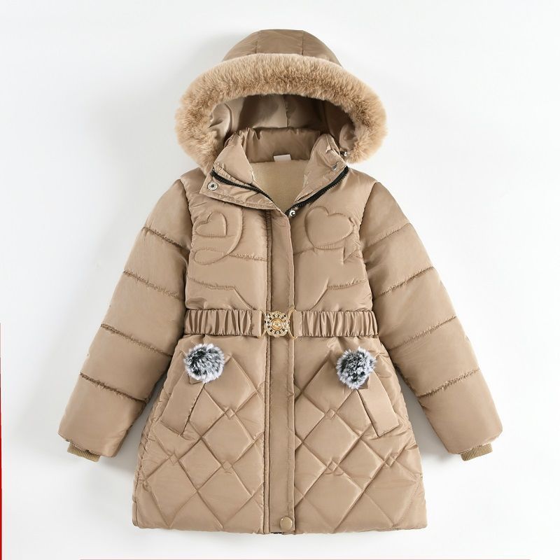 ฤดูใบไม้ร่วงของเด็กผู้หญิงฤดูหนาวหนาขนปลอกคอคลุมด้วยผ้าแจ็คเก็ตผ้าฝ้ายเด็กสบายๆหลวมกลางความยาวเสื้อ