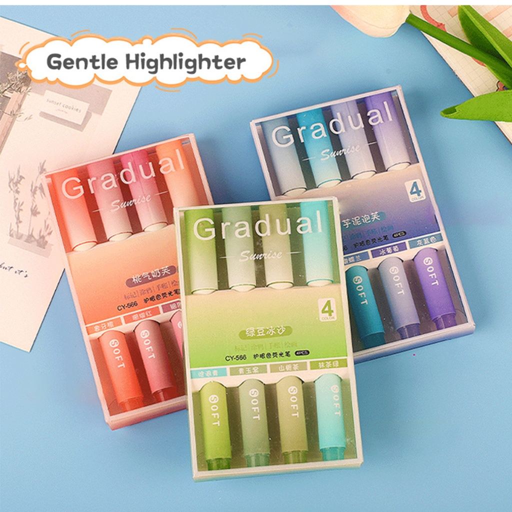ชุด4ชิ้น 4สี ปากกาไฮไลท์สีพาสเทล หัว4มม.ปากกามาร์กเกอร์ ขนาดพกพา เครื่องเขียนนักเรียน โรงเรียน