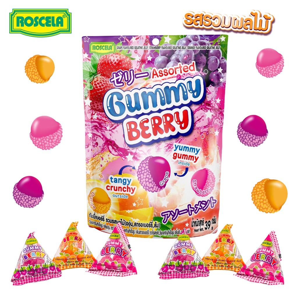 กัมมี่เบอร์รี่ - แบบซองตั้ง ตราโรสเซล่า(1 ถุง มี 14 ชิ้น)