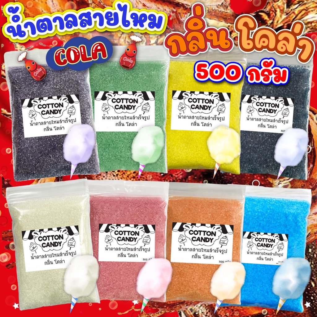 ผงน้ำตาลสายไหม 500 กรัม (มีรับรอง อย.) กลิ่นโคล่า 8 สี cotton candy (น้ำตาลสี,ผงปั่นสายไหม,น้ำตาลปั่นสายไหม)