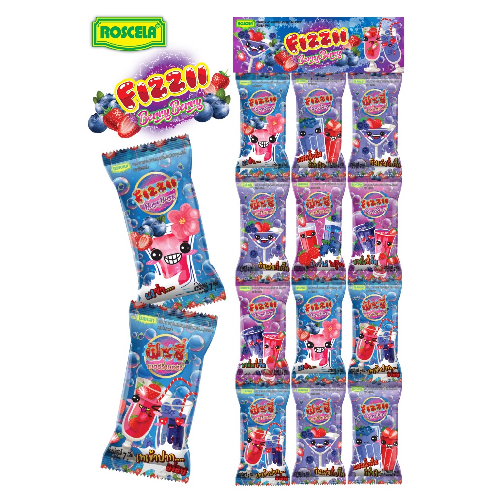 FIZZII ฟิซซี่ ผงโคล่า/ผงสไปร์/ผงเลม่อนและสับปะรด/ผงสตรอเบอร์รี่และบลูเบอร์รี่ ตราโรสเซล่า (1 แพ็ค มี 24 ซอง)