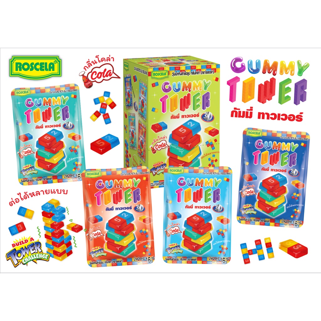 เยลลี่ กัมมี่บริก/กัมมี่ไข่มุก/กัมมี่ทาวเวอร์ กลิ่นไม้ต่างๆ ตราโรสเซล่า (1 แพ็ค มี 12 ซอง)