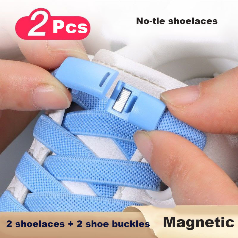 เชือกผูกรองเท้ายืดหยุ่นแบบแม่เหล็ก 0.8 ซม. - หัวเข็มขัดโลหะ, ไม่ต้องผูก, เหมาะสำหรับรองเท้ากีฬาและรองเท้าแฟชั่น