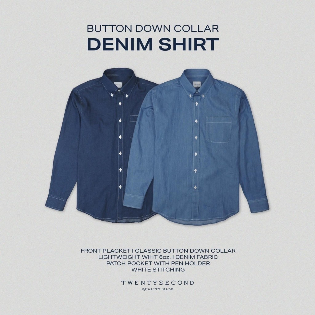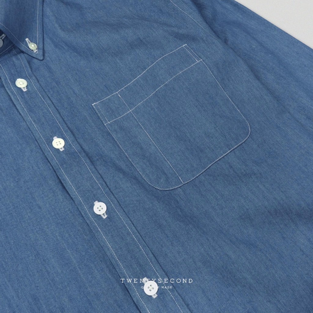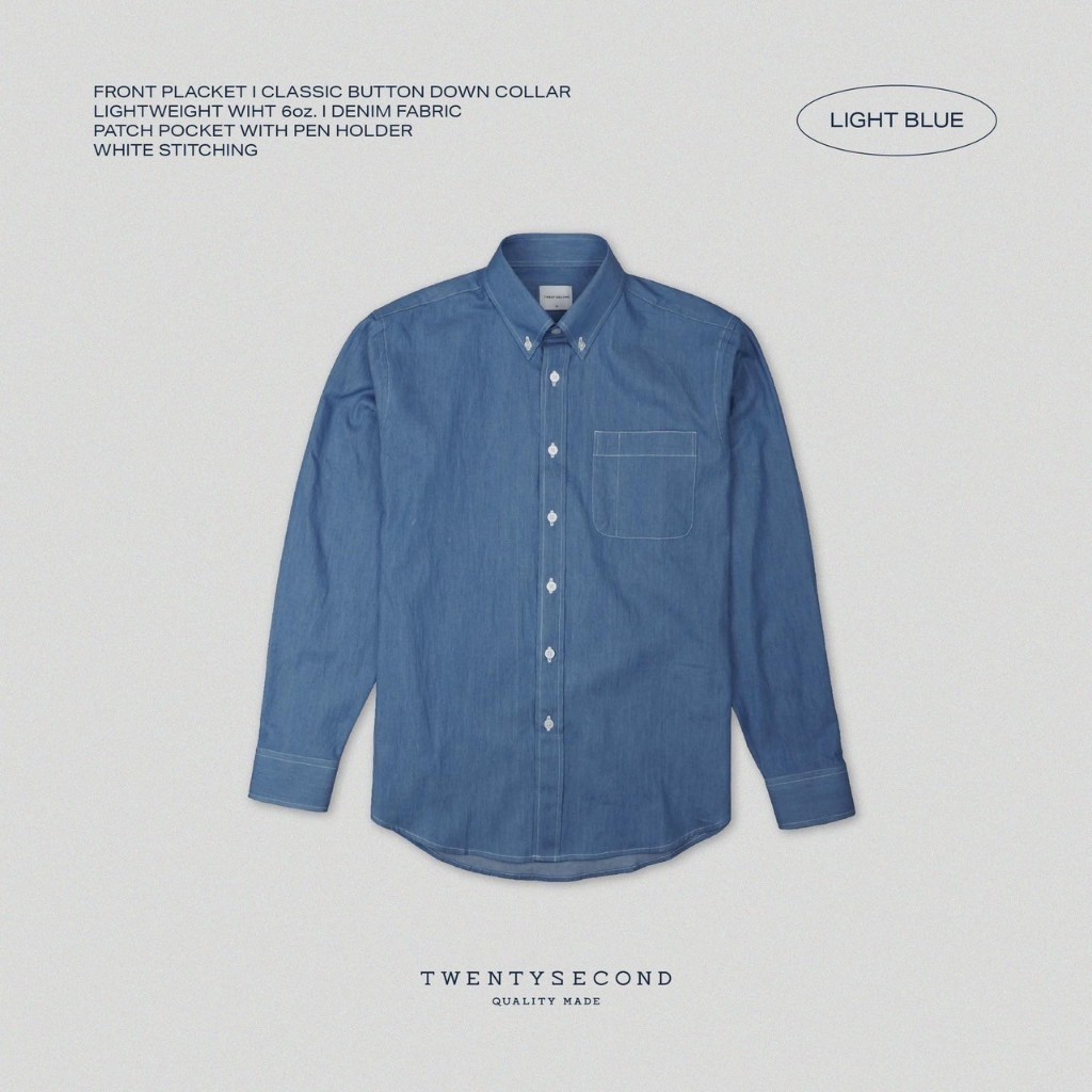 TWENTYSECOND เสื้อเชิ้ตแขนยาว ปกติดกระดุม เสื้อยีนส์ รุ่น Button Down Collar Denim Shirt - ยีนส์สีอ