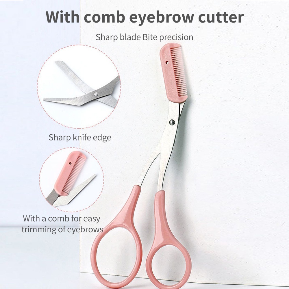 กรรไกรตัดแต่งขนคิ้ว มีดโกนกันคิ้ว กรรไกรตัดขนคิ้ว อุปกรณ์ตกแต่งคิ้ว 2 ชิ้น พร้อมหวีกันคิ้ว ขนาดเล็ก
