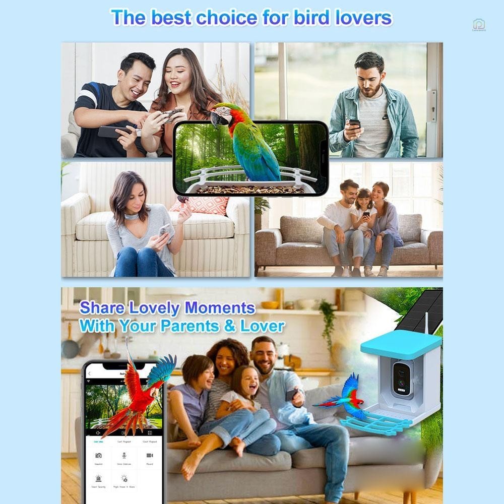 เครื่องป้อนนกอัจฉริยะที่มีกล้อง2ล ความจุป้อนนกสําหรับกลางแจ้งที่มีแผงพลังงานแสงอาทิตย์แบตเตอรี่ในตั