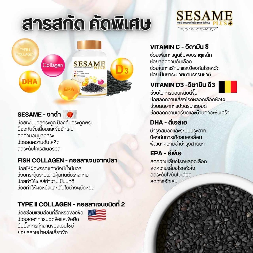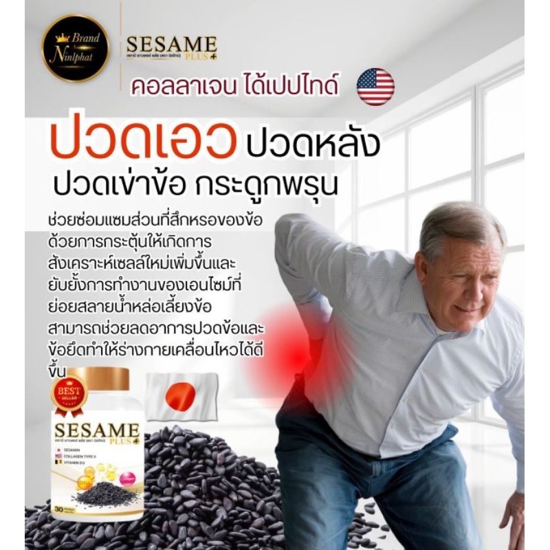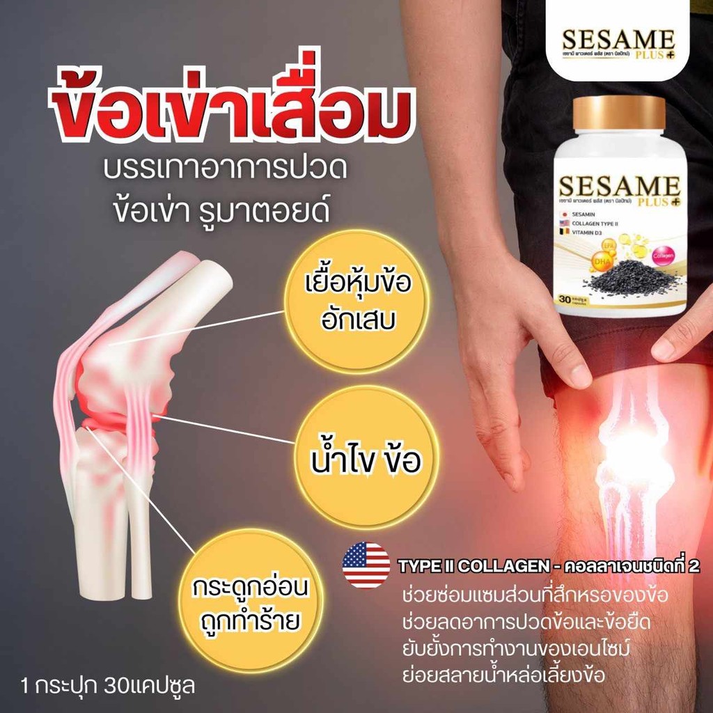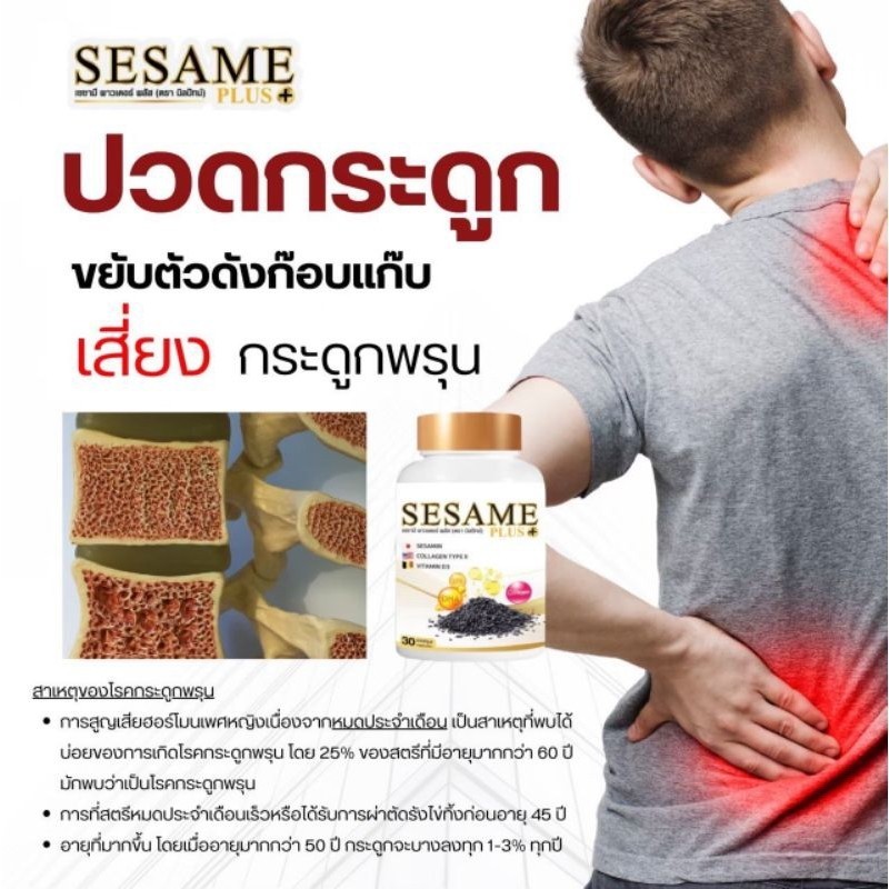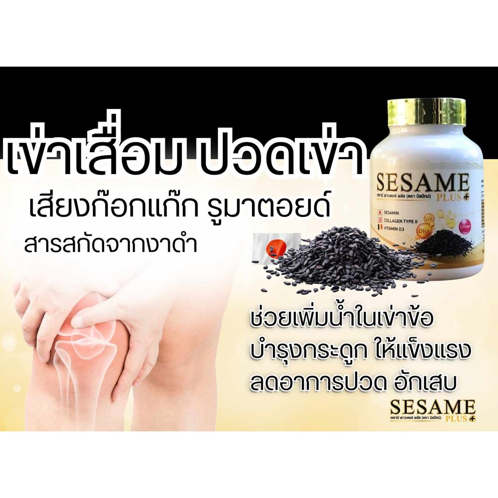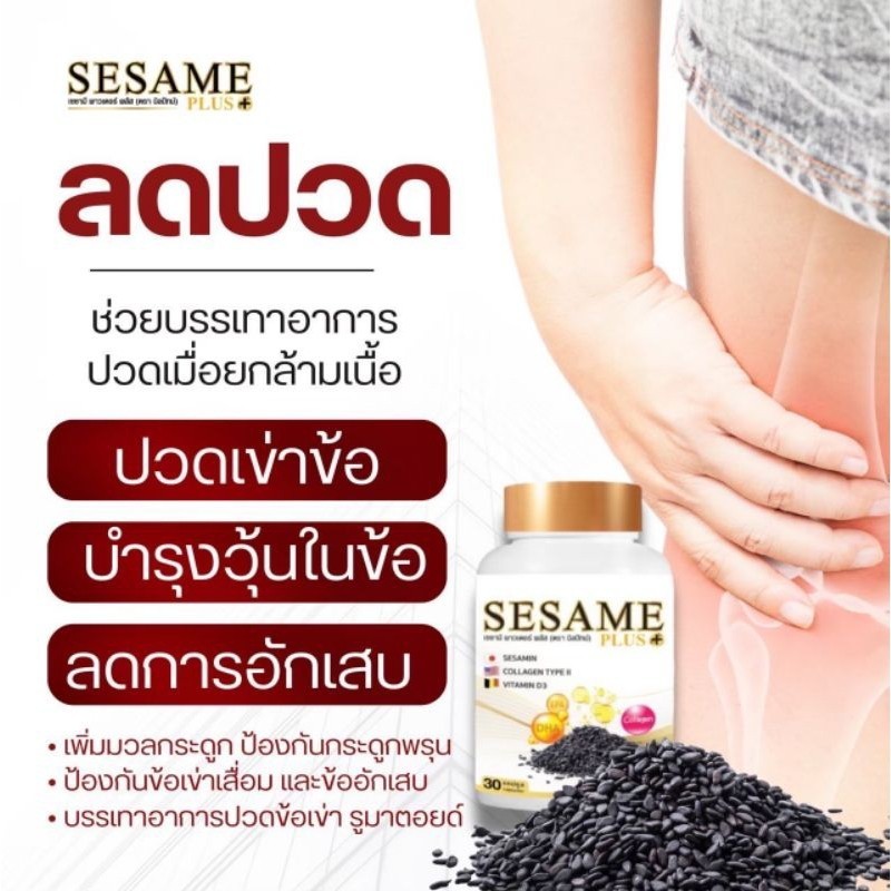 เซซามี พลัส SESAME PLUS ผลิตภัณฑ์เสริมอาหาร งาดำสกัด เพิ่มมวลกระดูก ป้องกันกระดูกพรุน บรรเทาการปวดข้อเข่า รูมาตอยด์