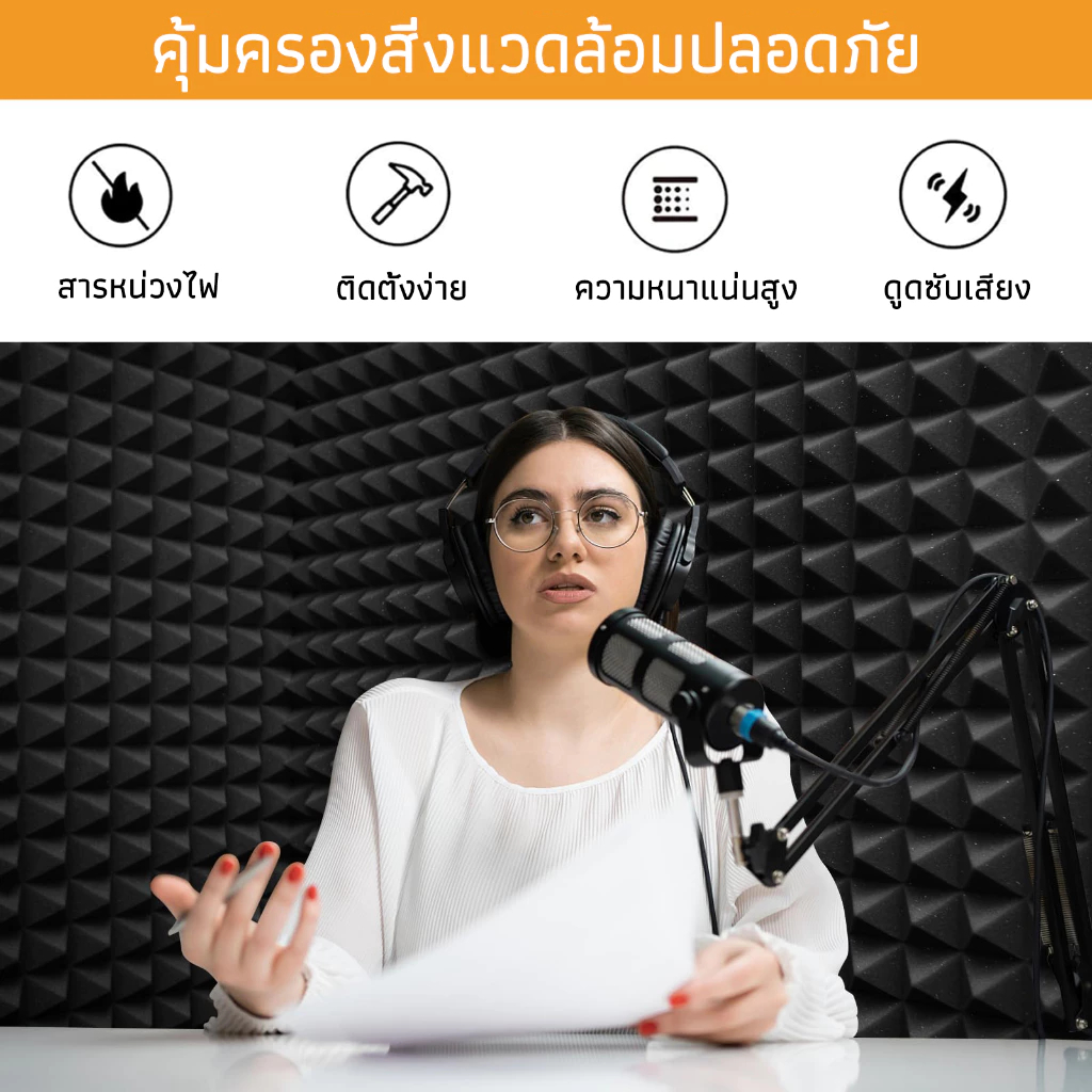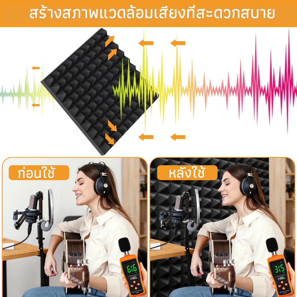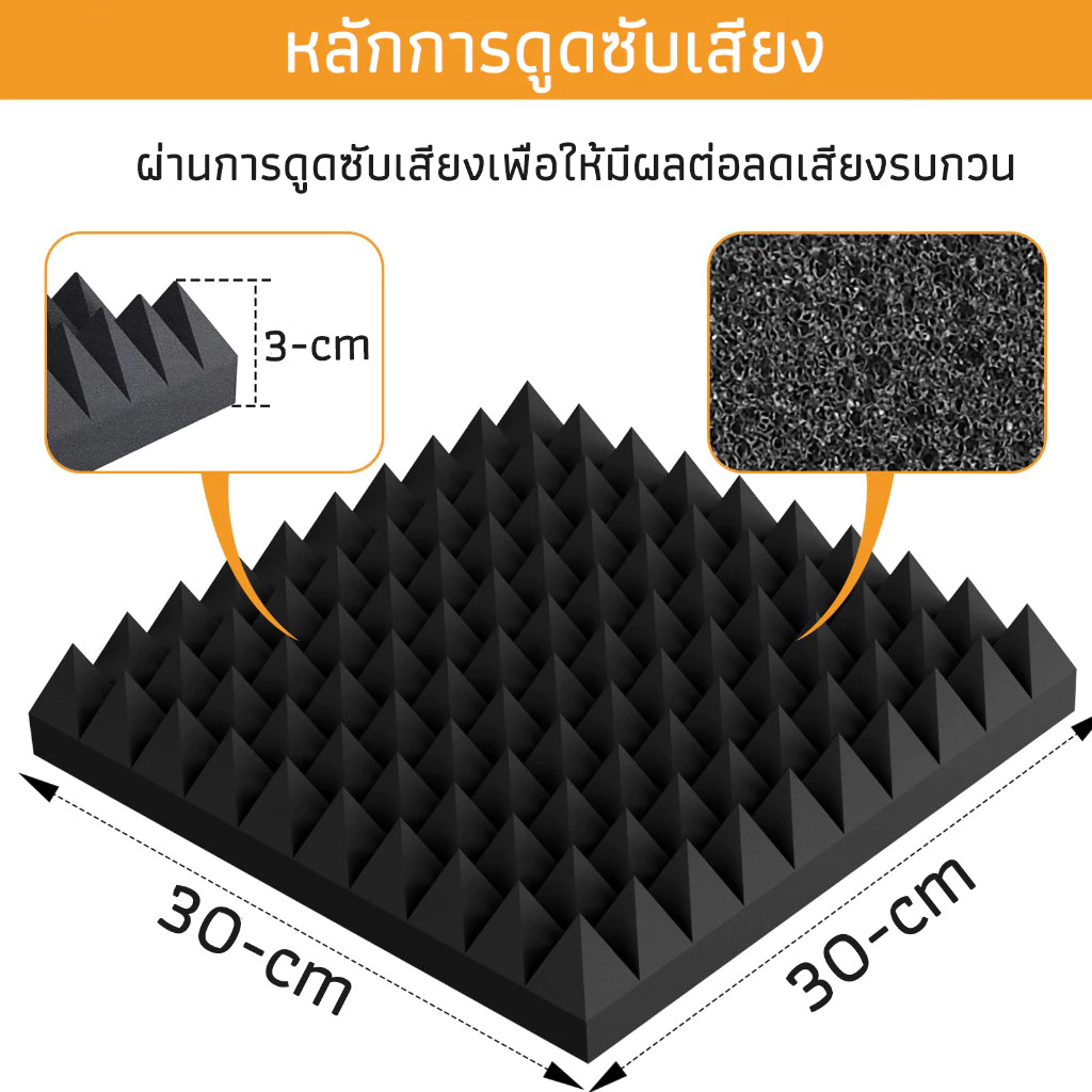 (12 แผ่น/แพ๊ค)แผ่นเก็บเสียง แผ่นซับเสียง แผงโฟมอะคูสติก กันความร้อน 30*30*5cm ขนาด เหมาะสำหรับผนังห้อง