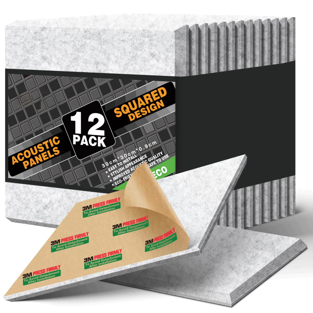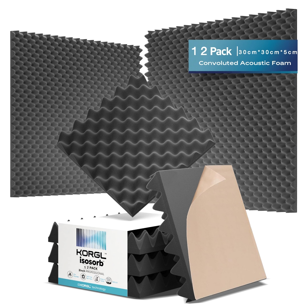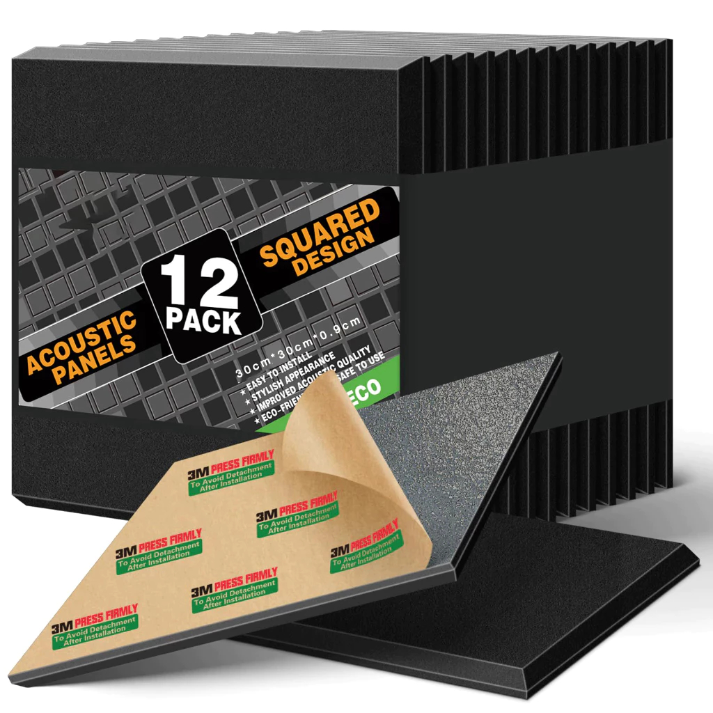 (12 แผ่น/แพ๊ค)แผ่นเก็บเสียง แผ่นซับเสียง แผงโฟมอะคูสติก กันความร้อน 30*30*5cm ขนาด เหมาะสำหรับผนังห้อง