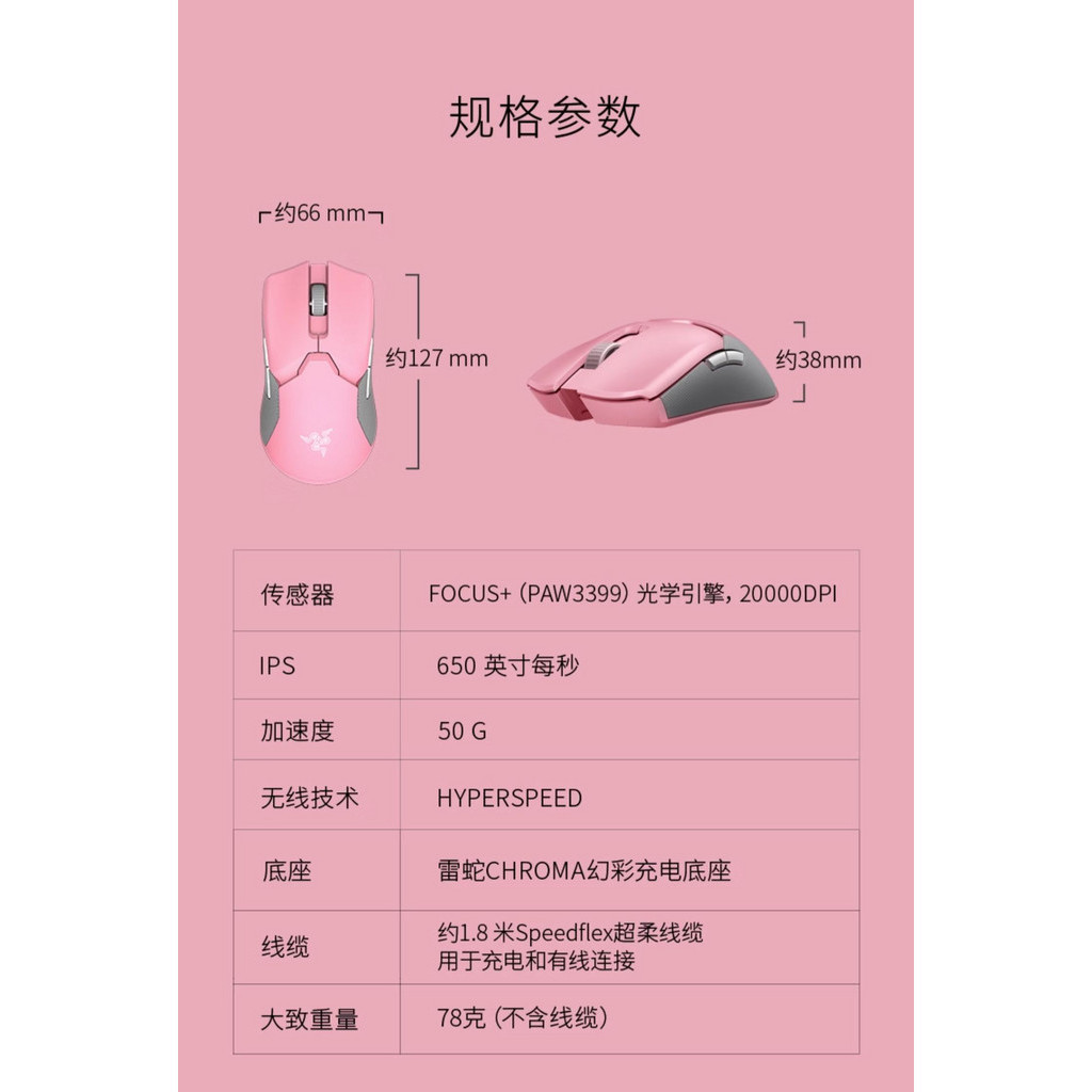 Razer Razer viper Ultimate Edition เมาส์เกมมิ่งไร้สาย ฐานชาร์จ RGB คริสตัล สีชมพู น้ําหนักเบา