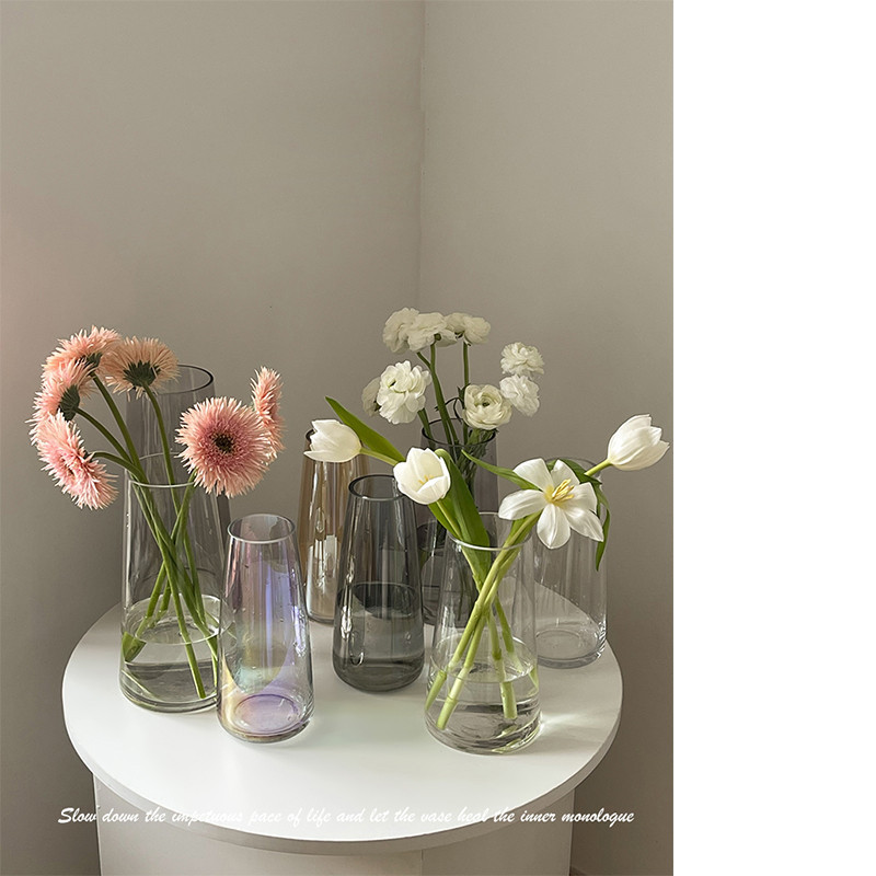 (มาถึงภายใน 24 ชั่วโมง)แจกันแก้วสีไล่ระดับสีที่เรียบง่ายตกแต่งห้องนอนเครื่องประดับแจกัน