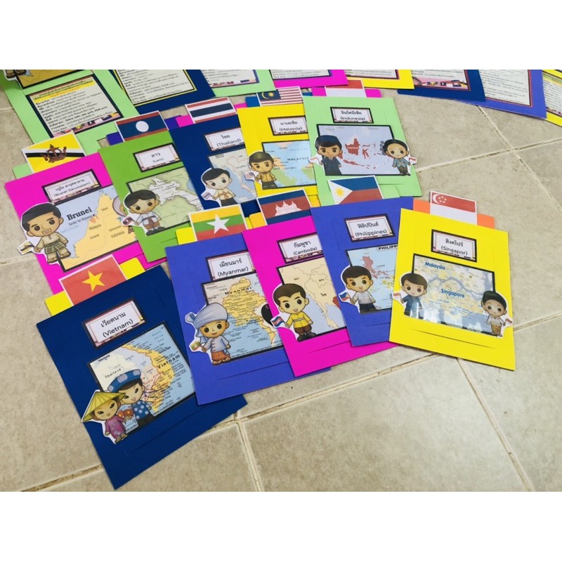 สื่อการสอนสังคม 💥ประเทศอาเซียน 10ประเทศ ชุด10เล่ม💥สื่อการสอนสังคม สื่อการสอนทำมือ