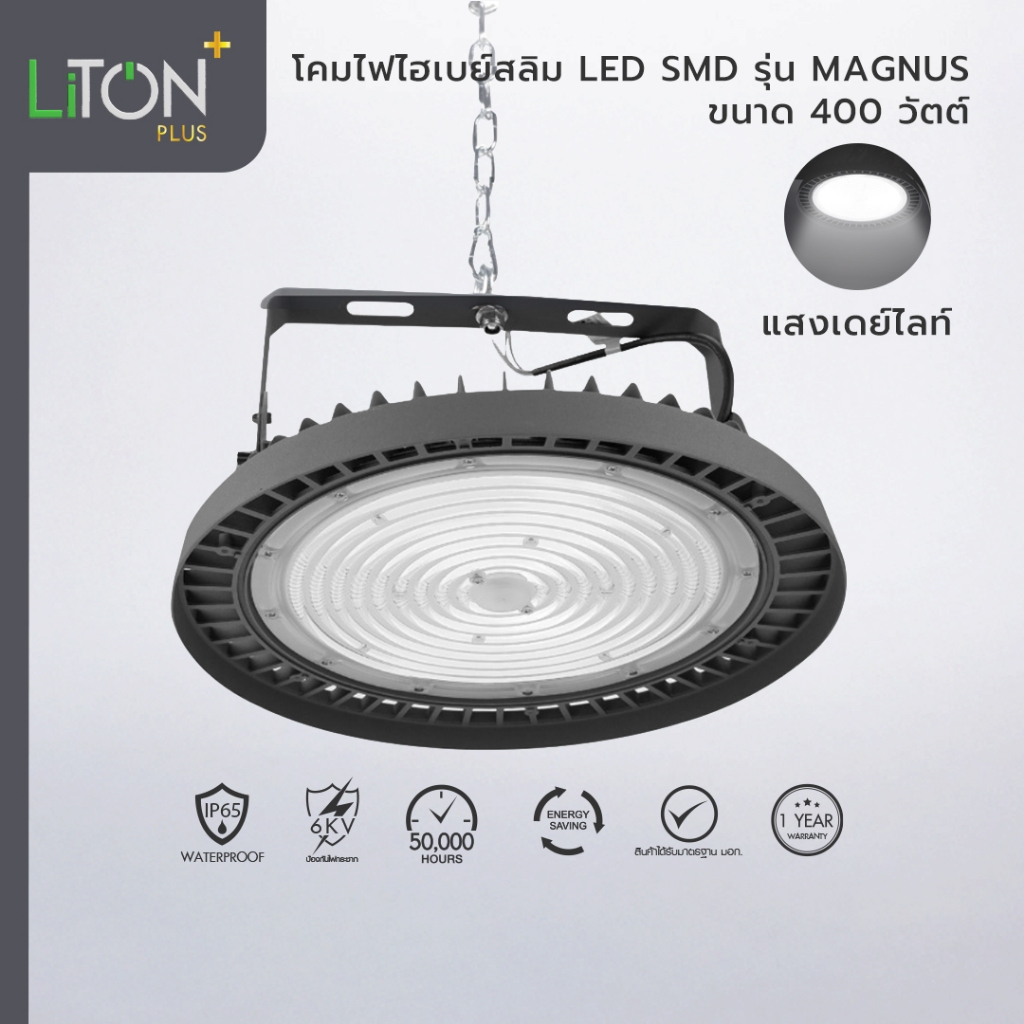 LiTON โคมไฟ ไฮเบย์ LED รุ่น MAGNUS 400W Daylight (แสงขาว) แข็งแรง ทนทาน
