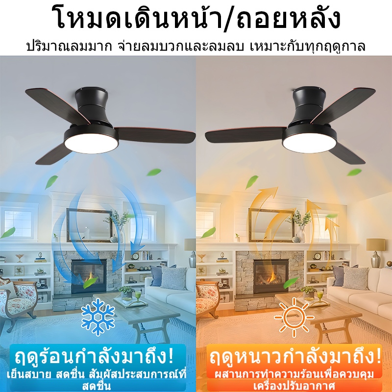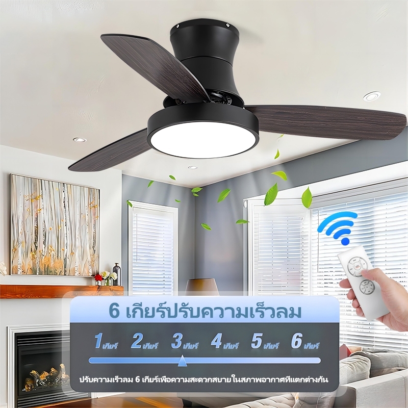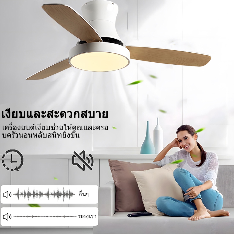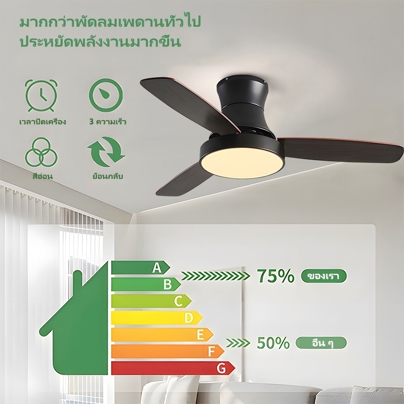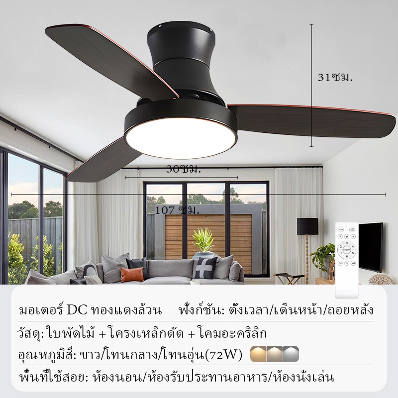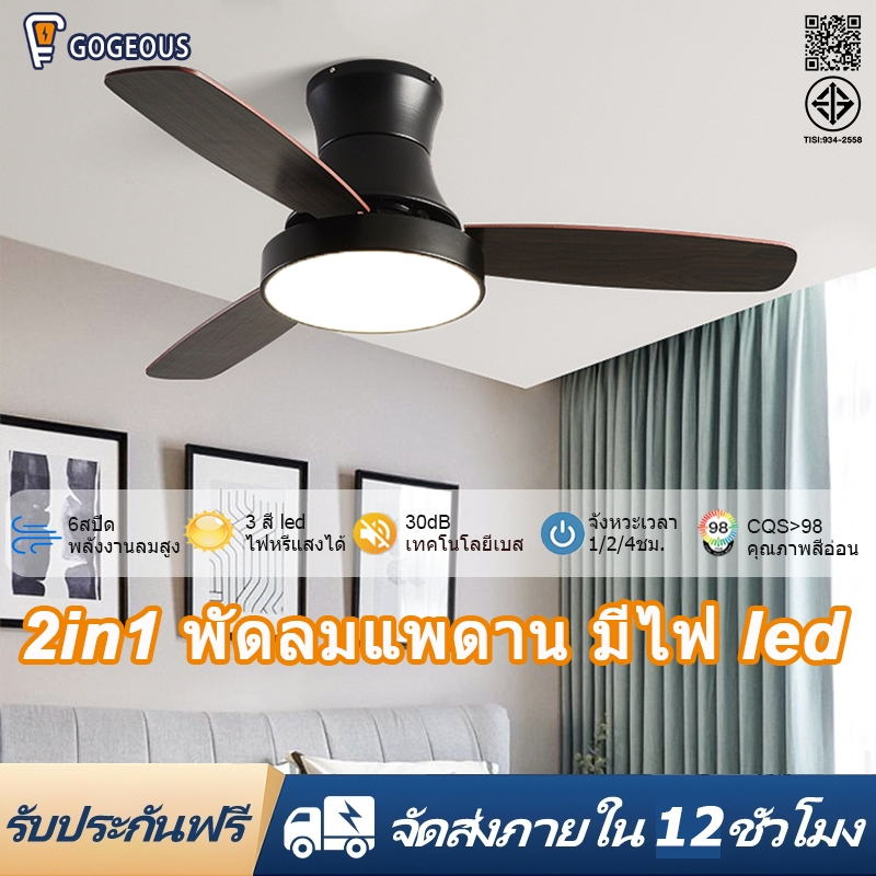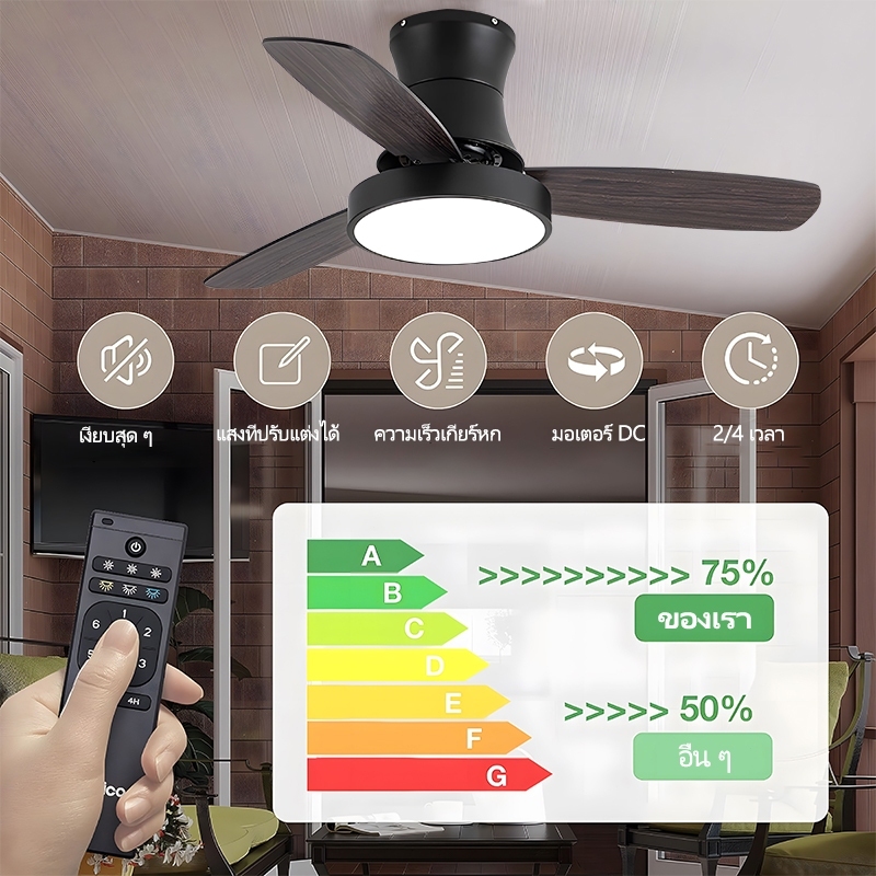 GOGEOUS พัดลมเพดาน 42/48 นิ้ว พร้อมไฟ LED ปรับสีได้ 3สีและรีโมทคอนโทรล มอเตอร์ DC ประหยัดไฟ ใบไม้ไม้ 3 ใบ พัดลมเพดานมีไฟ