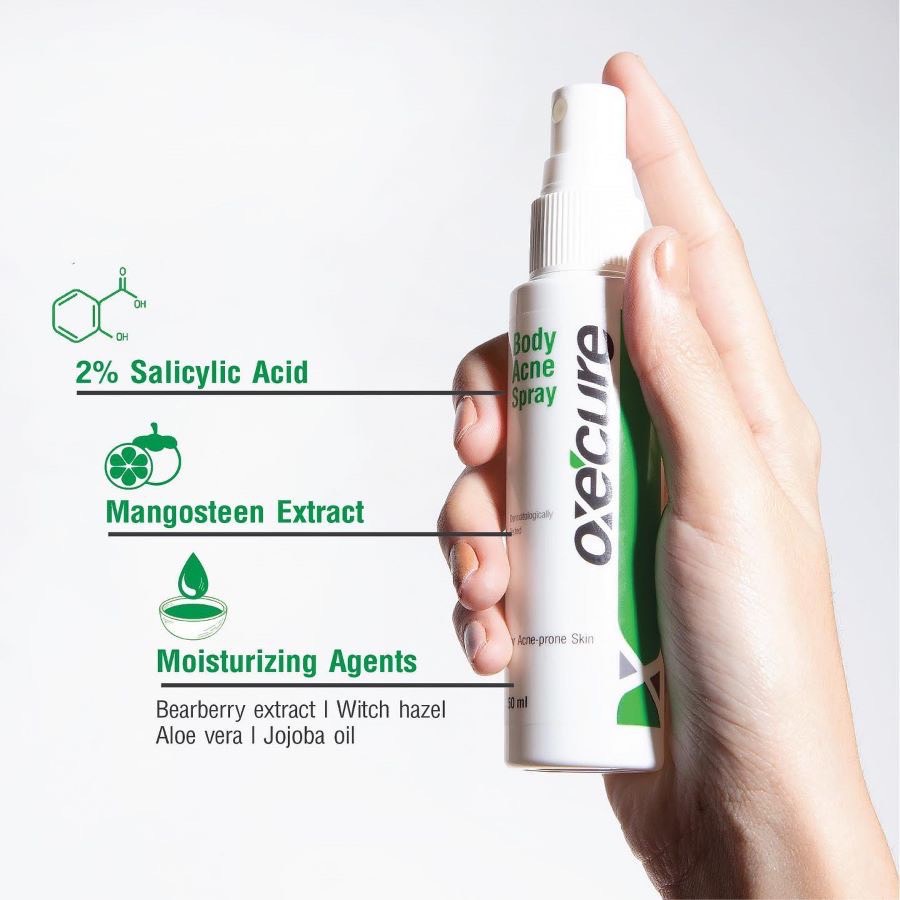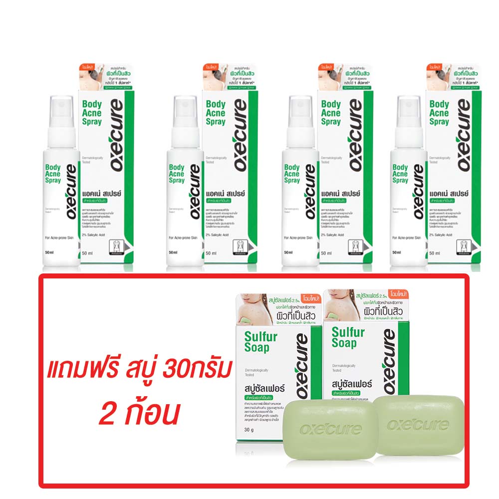 ซื้อ3แถม สบู่30กรัม 1ก้อน Oxe'cure สเปรย์ลดสิว แผ่นหลัง และลำตัว Body Acne Spray 50 ml ของแท้ 100% อ๊อกซีคียว Oxecure