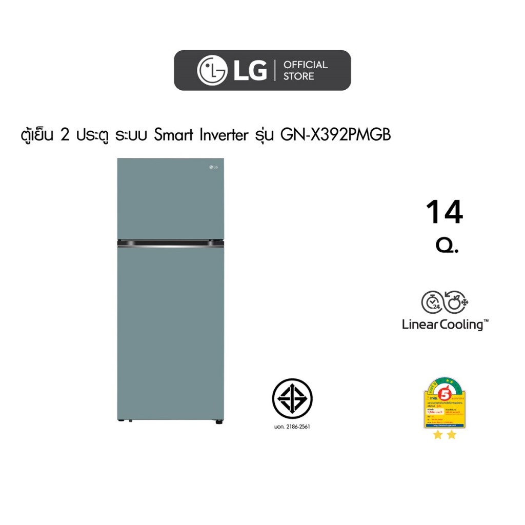 LG ตู้เย็น 2 ประตู Macaron Series รุ่น GN-X392PMGB สีฟ้าพาสเทล ขนาด 14.0 Q│Smart Inverter Compressor