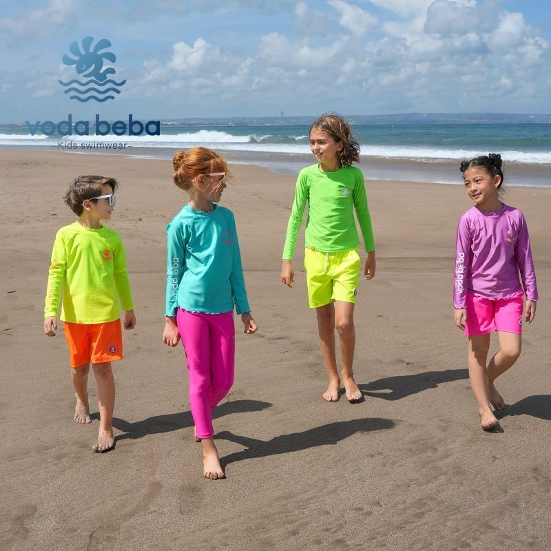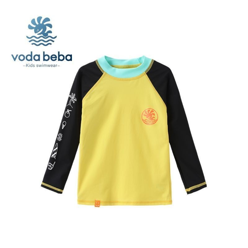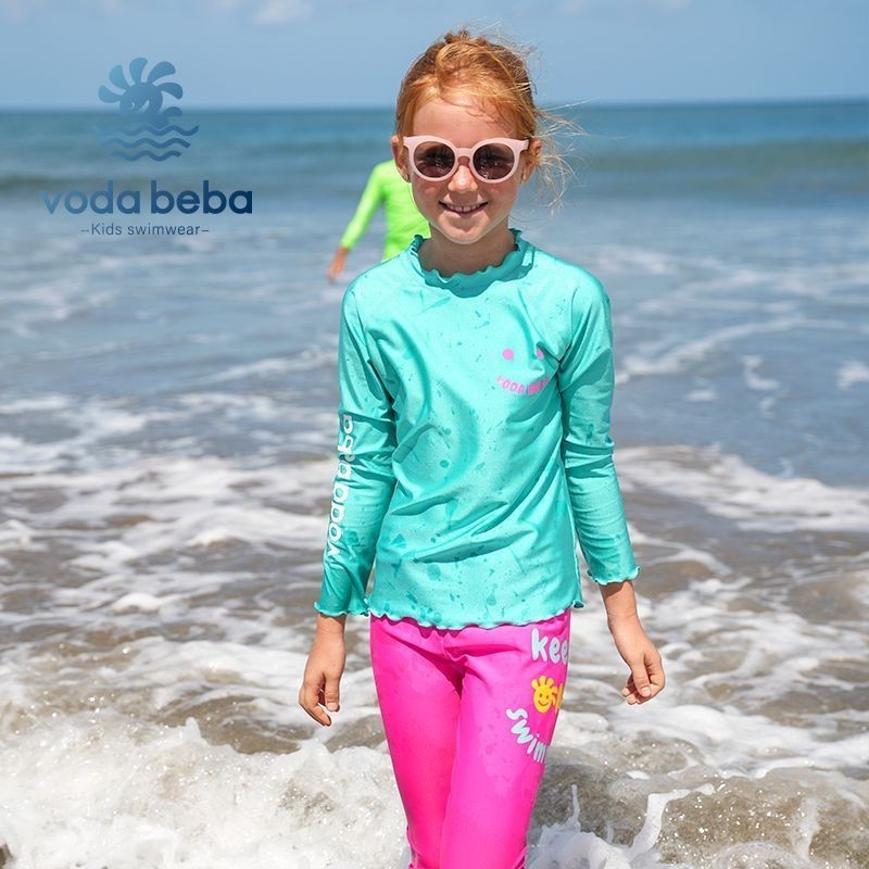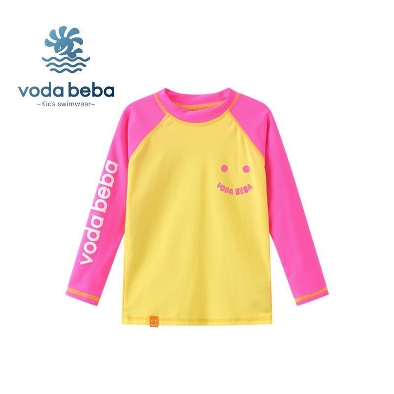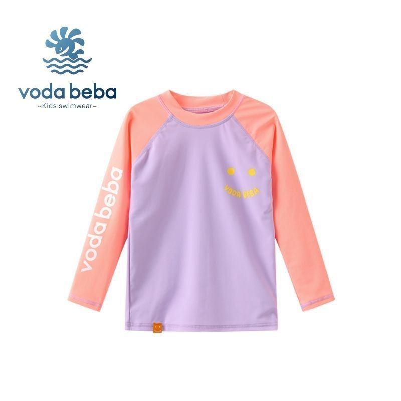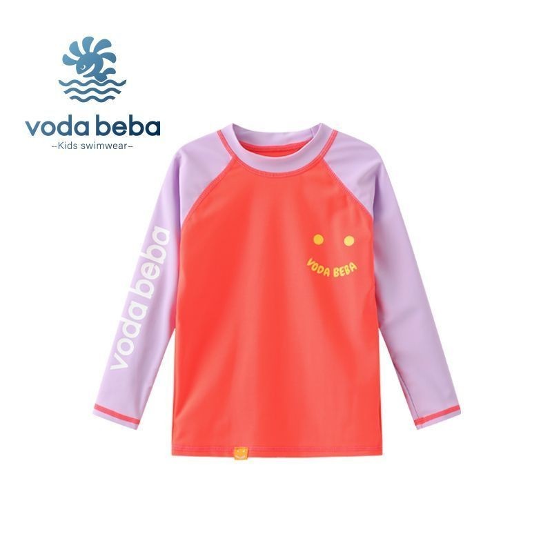 VODA BEBA ชุดว่ายน้ำเด็กกันแดดแขนยาวแบบแยกชิ้นสำหรับเด็กชายและเด็กหญิงกางเกงว่ายน้ำเด็กหญิงสีสันสดใสชุดว่ายน้ำเด็กผู้หญิงชุดว่ายน้ำเด็กผู้ชายชุดไปทะเลเด็ก
