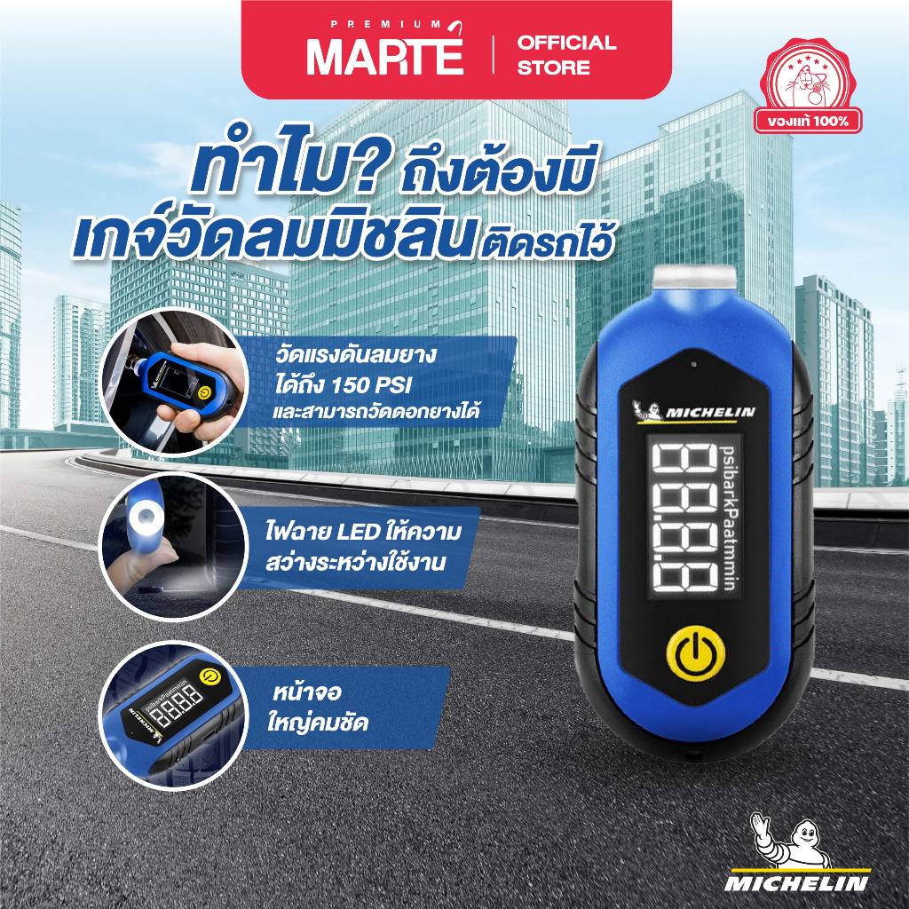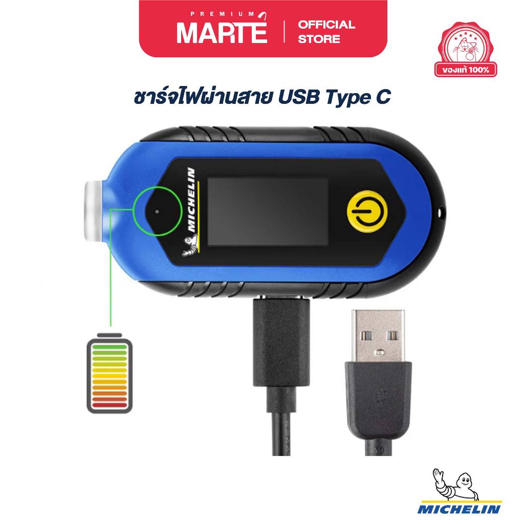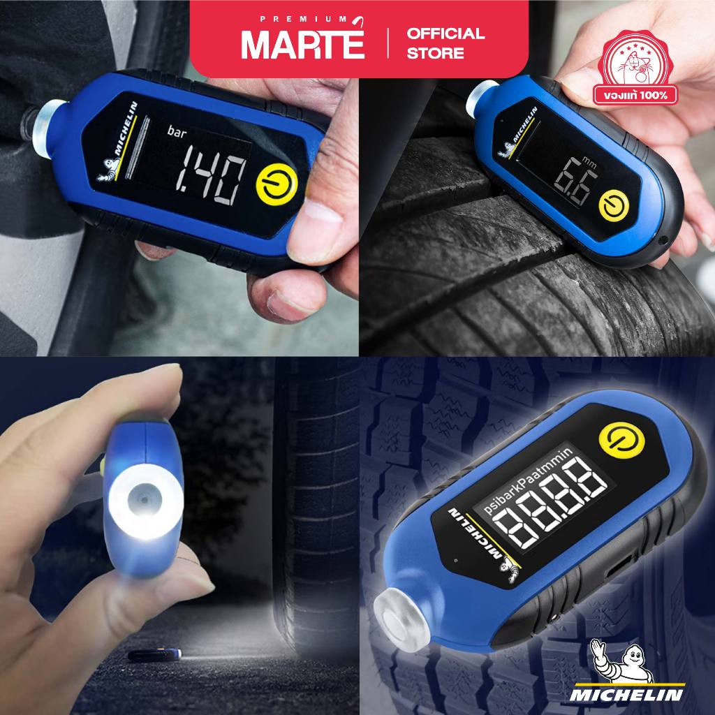 MICHELIN เกจ์วัดลมดิจิตอลพร้อมที่วัดความลึกดอกยางและไฟฉาย รุ่นชาร์จไฟมีแบตเตอรี่ในตัว จอ LCD รุ่น M2210
