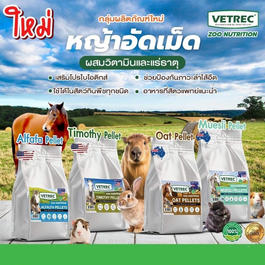 Vetrec Zoo Nutrition Timothy Hay Pellets หญ้าทิโมธีอัดเม็ด ผสมวิตามินรวมและแร่ธาตุ ขนาด 10 กิโลกรัม