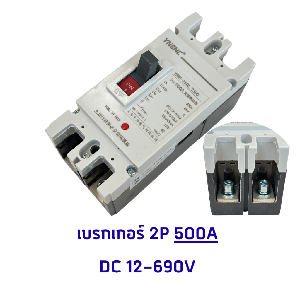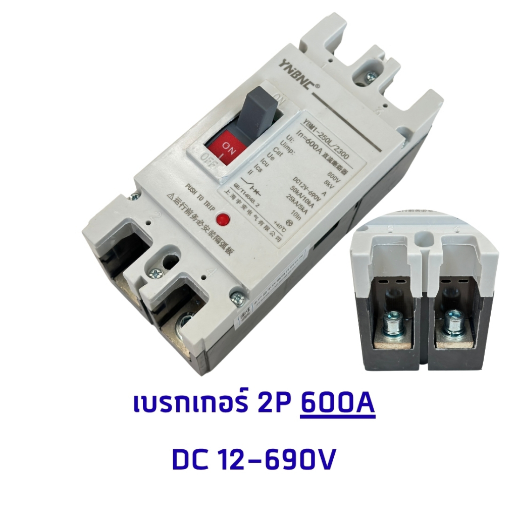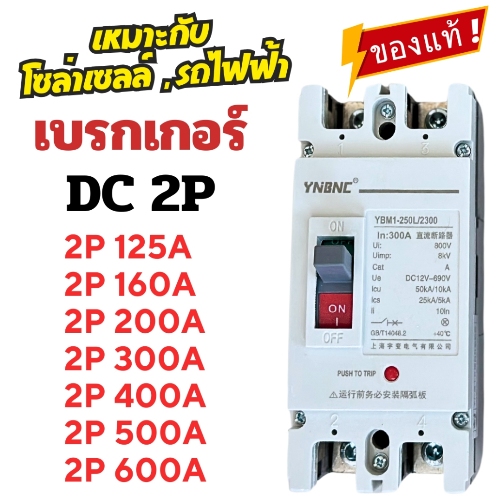เบรกเกอร์ DC 2P MCCB 125A,160A,200A,300A, 400A, 500A, 600A Breaker DC ระบบโซล่าเซลล์ ระบบรถไฟฟ้า