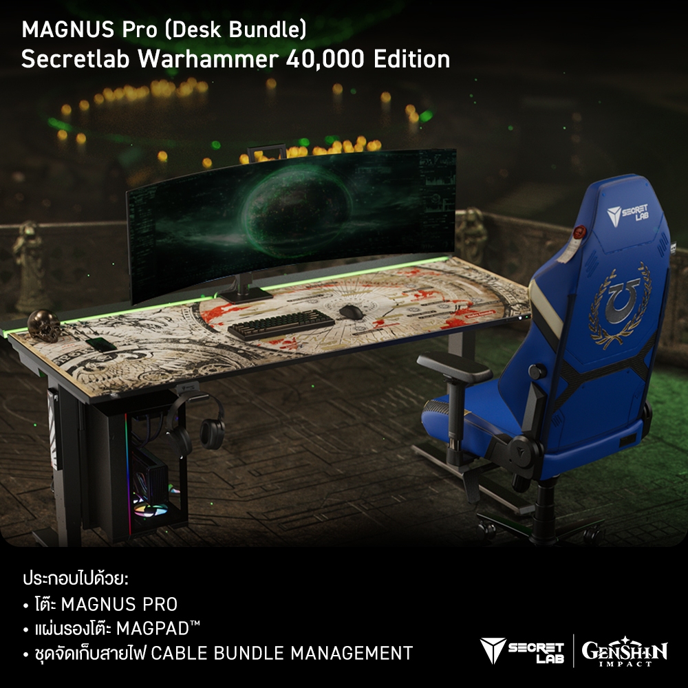 Secretlab MAGNUS Pro Bundle Warhammer Edition —โต๊ะคอมปรับระดับไฟฟ้า จำหน่ายเป็นเซ็ตครบชุด