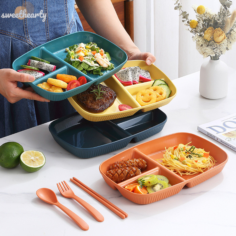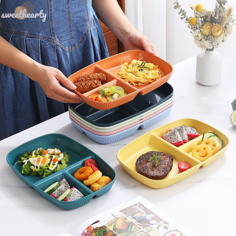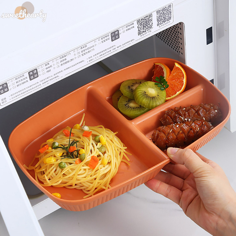 [Sweethearty] ใหม่ จานแบ่งอาหาร 3 ช่อง ใช้ซ้ําได้ ปลอดภัย สําหรับผู้ใหญ่ ไมโครเวฟ