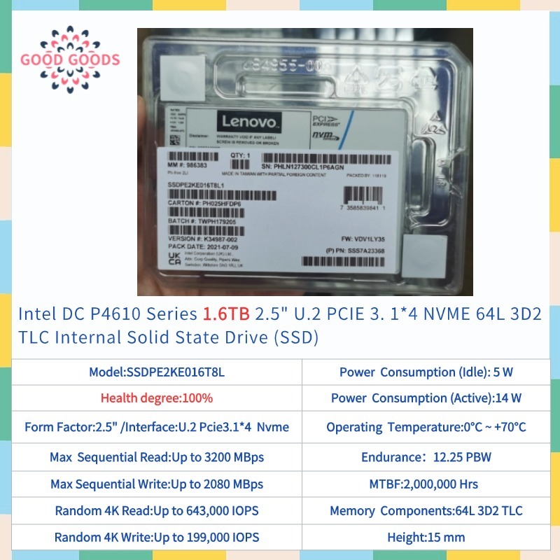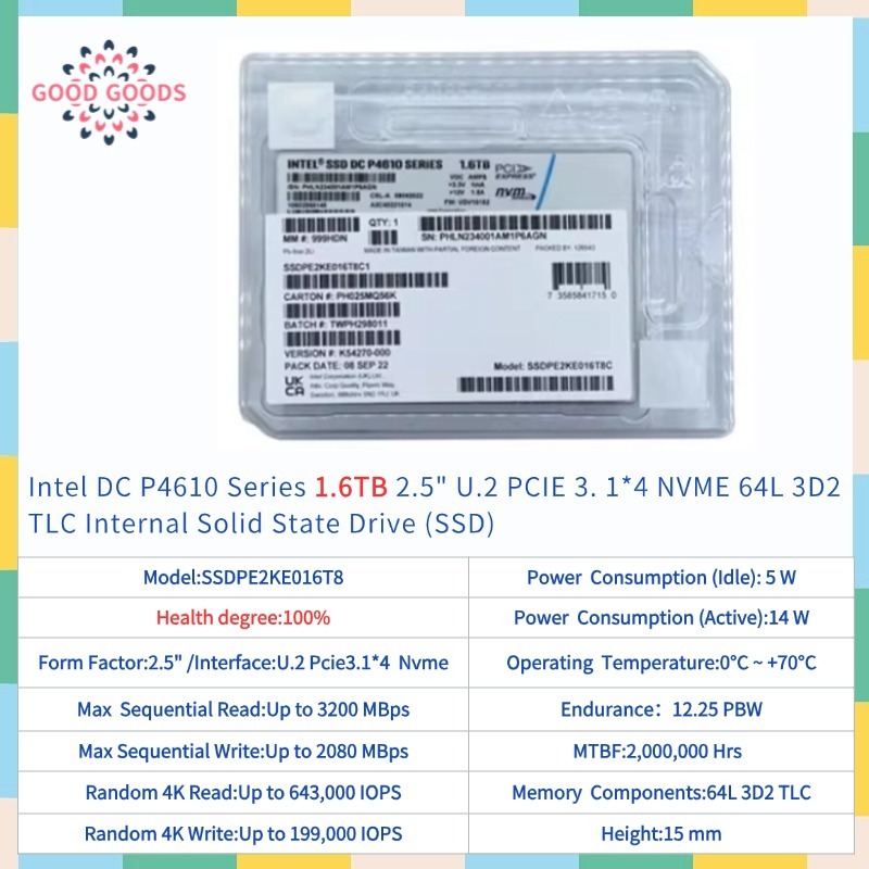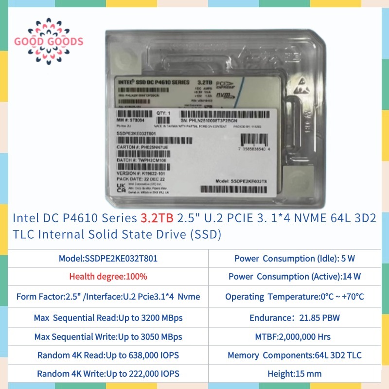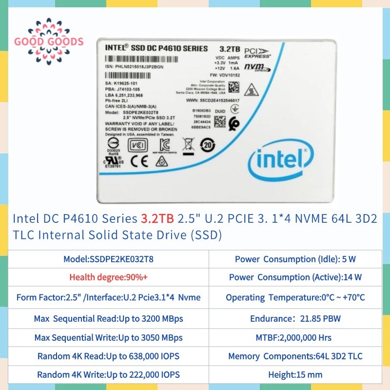 Intel DC P4610 Series 1.6TB 3.2TB 2.5" U.2 PCIE 3. 1*4 NVME 64L 3D2 TLC ไดรฟ์โซลิดสเตตภายใน (SSD) SSDPE2KE016T8