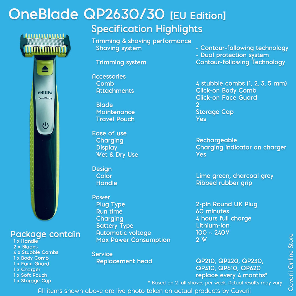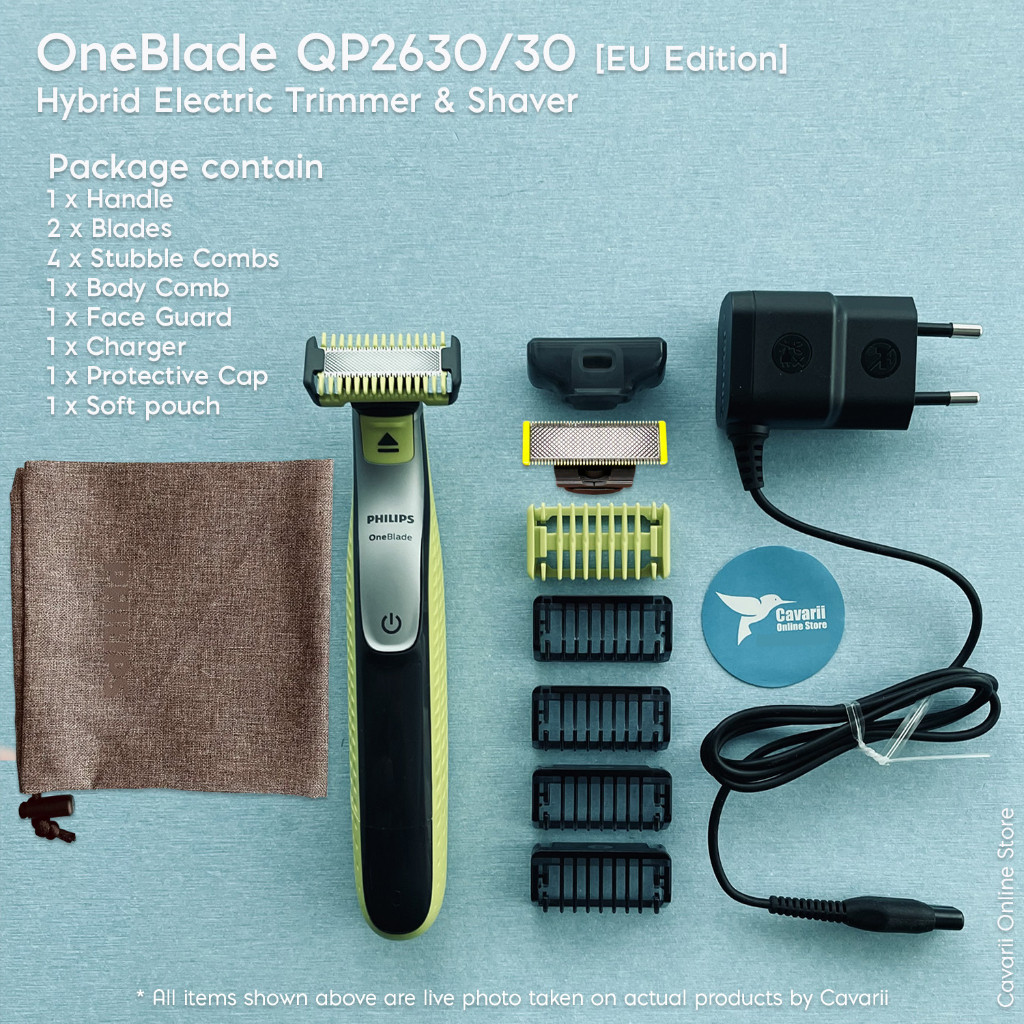Philips OneBlade QP2630/30 Hybrid Stubble Trimmer และเครื ่ องโกนหนวดพร ้ อมความยาว 4 x และใบมีดเสร