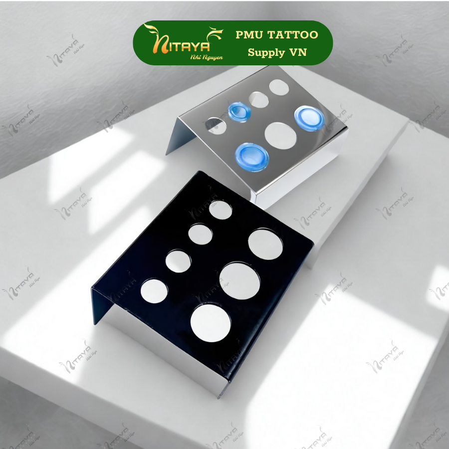 ถาดวางถ้วยหมึก Inox มีรูหลายขนาด (ประมาณ 9–16 มม)