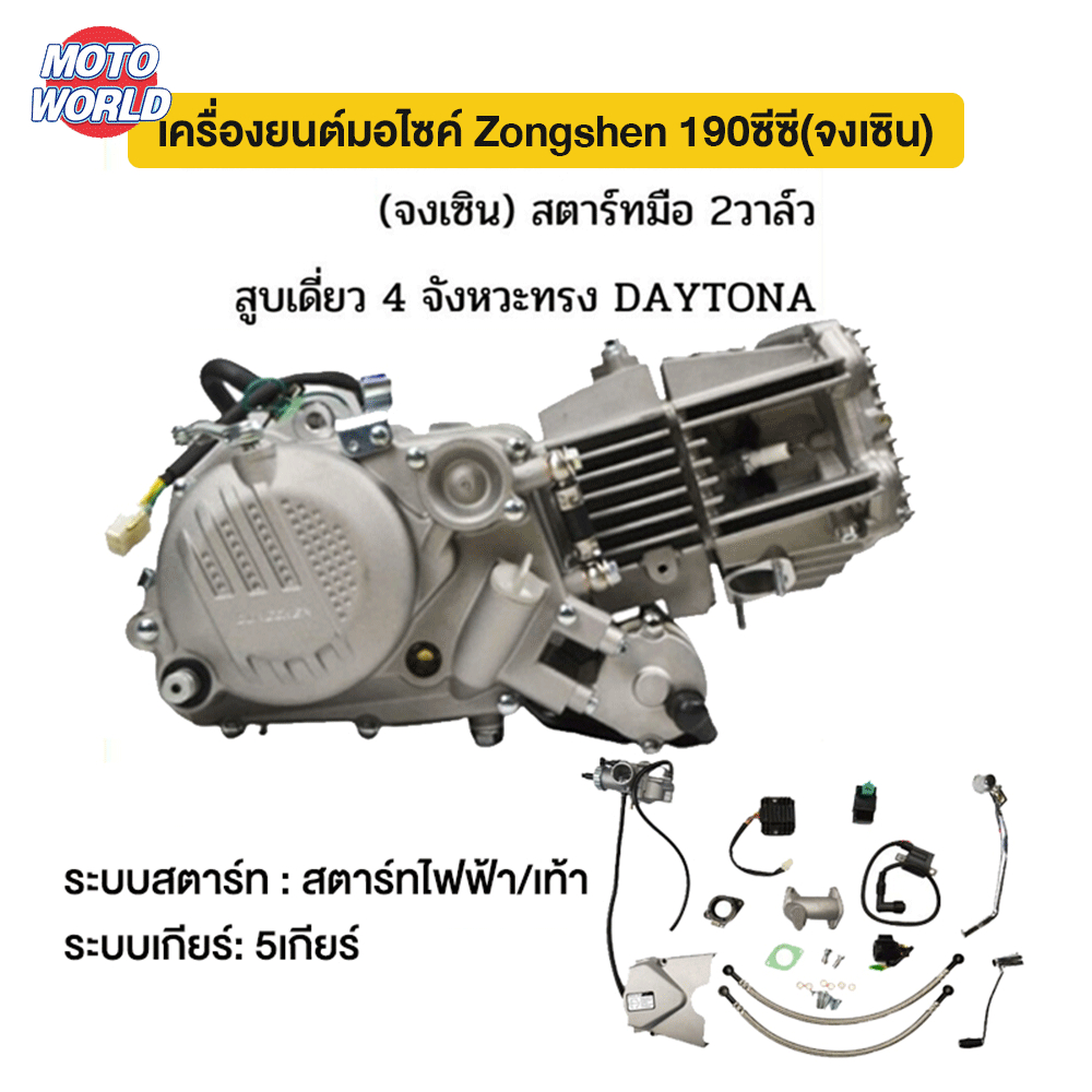 Zongshen เครื่องยนต์(จงเซิน) 190ซีซี(จงเซิน) สตาร์ทมือ 2วาล์ว สตาร์ทมือคอ สูบเดี่ยว 4 จังหวะ ทรง DAYTONA ถูกกฏ