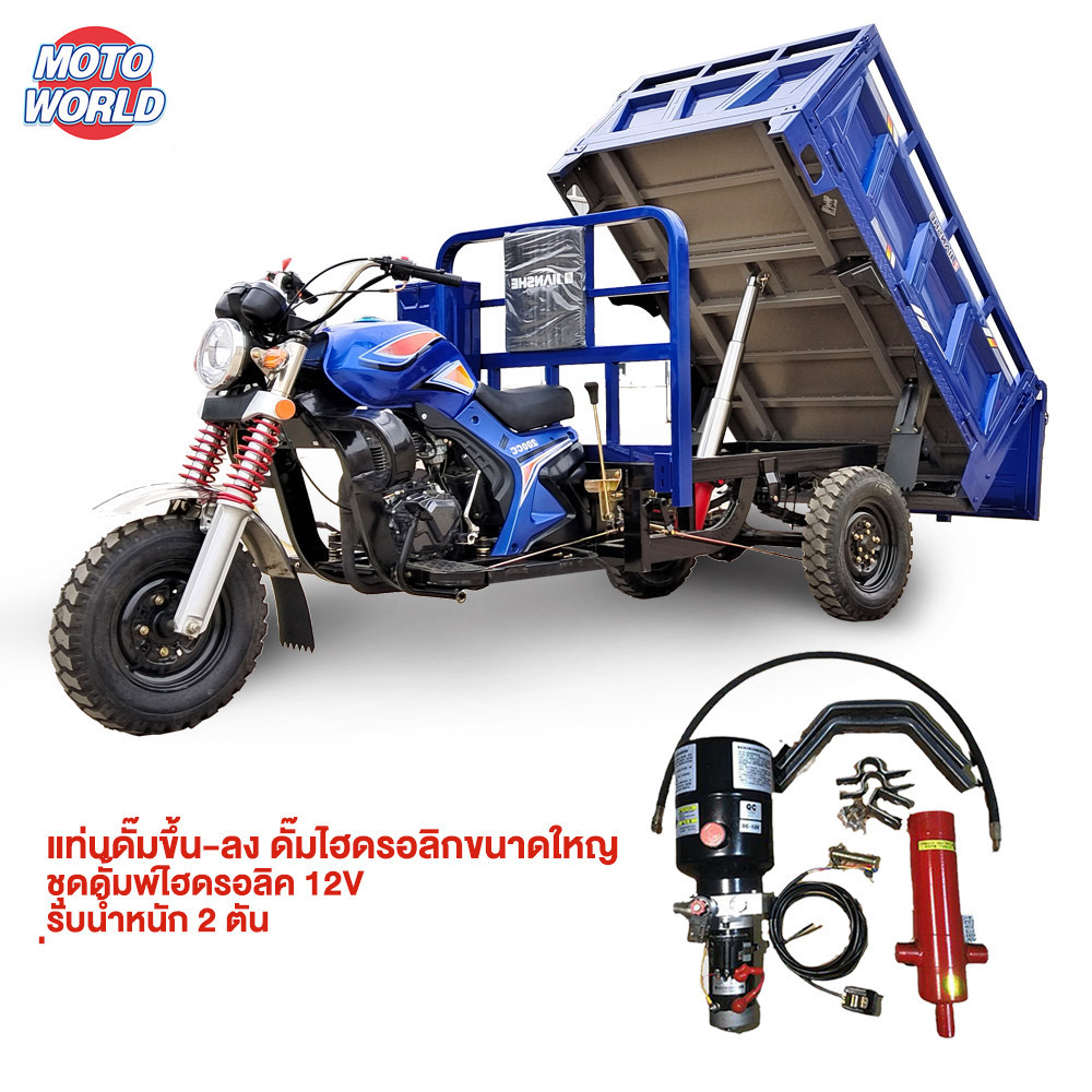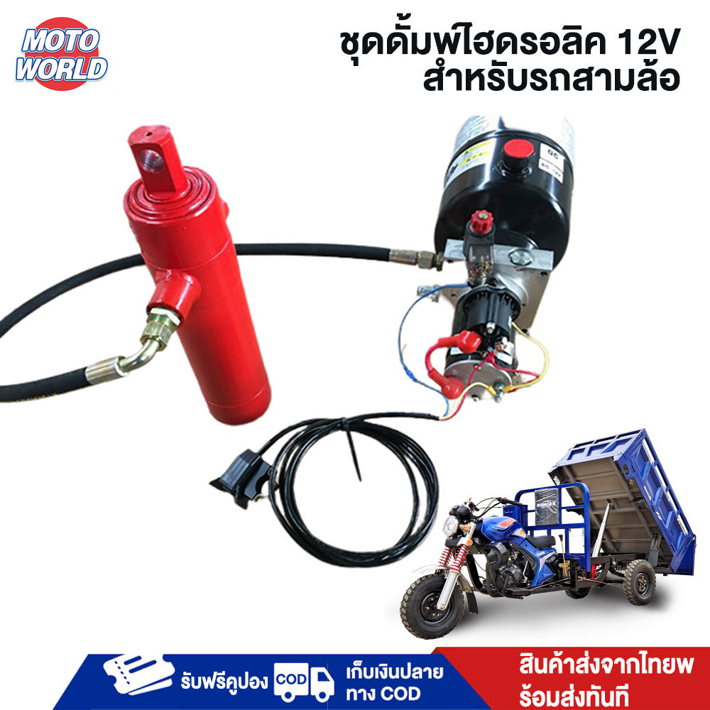 Moto World ไฮดรอลิกรถจักรยา รถสามล้อควบคุมไฟฟ้าอุปกรณ์ถ่ายโอน ดั๊มไฮดรอลิกขนาดใหญ่12Vสำหรับรถสามล้อ รถบรรทุกยกดัดแปลงชุด