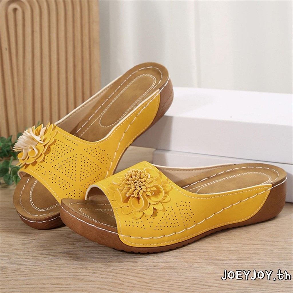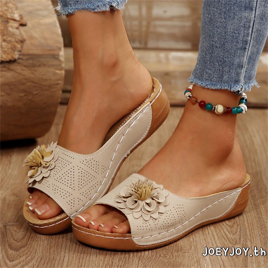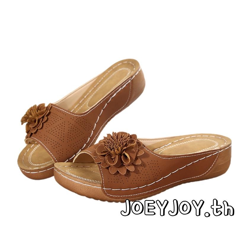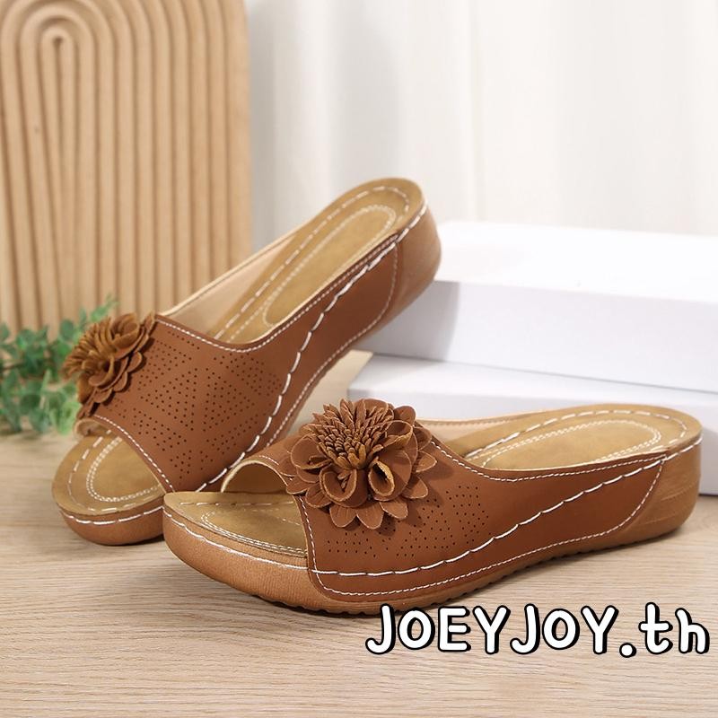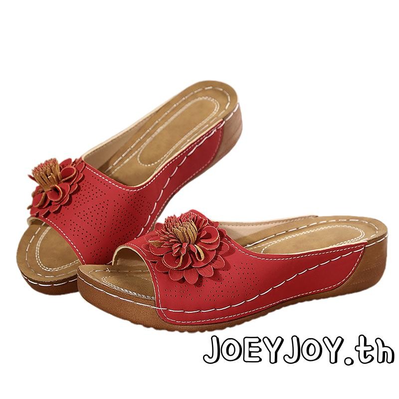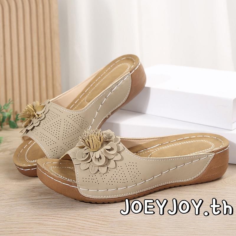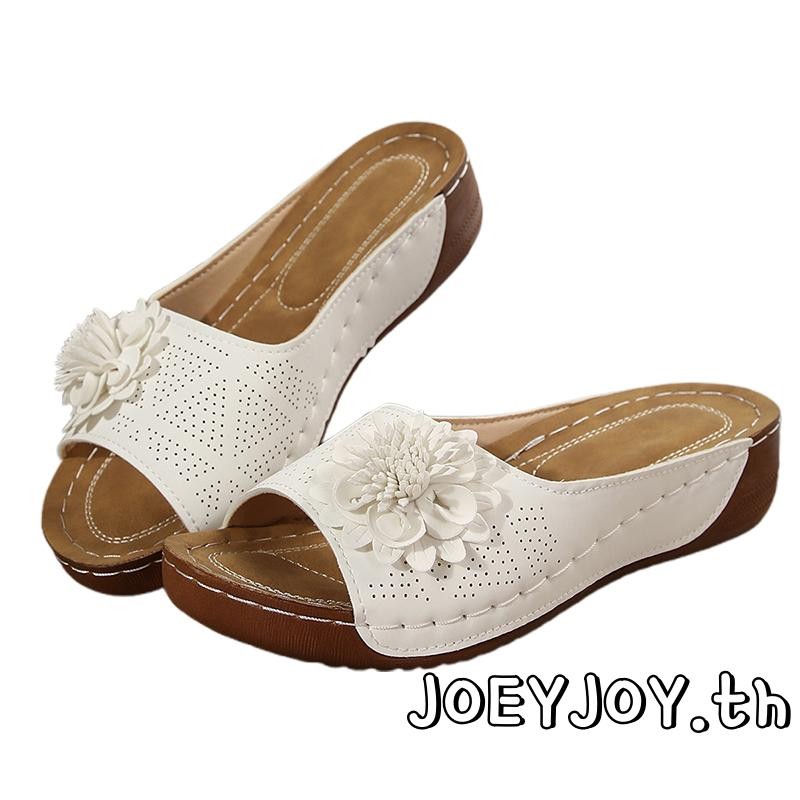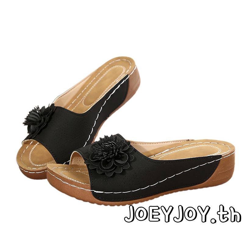 JOEYJOY-Womens 3D ดอกไม้เปิดนิ้วเท้าลื่นรองเท้าแตะพื้นหนาสำหรับชายหาดและกิจกรรมกลางแจ้ง