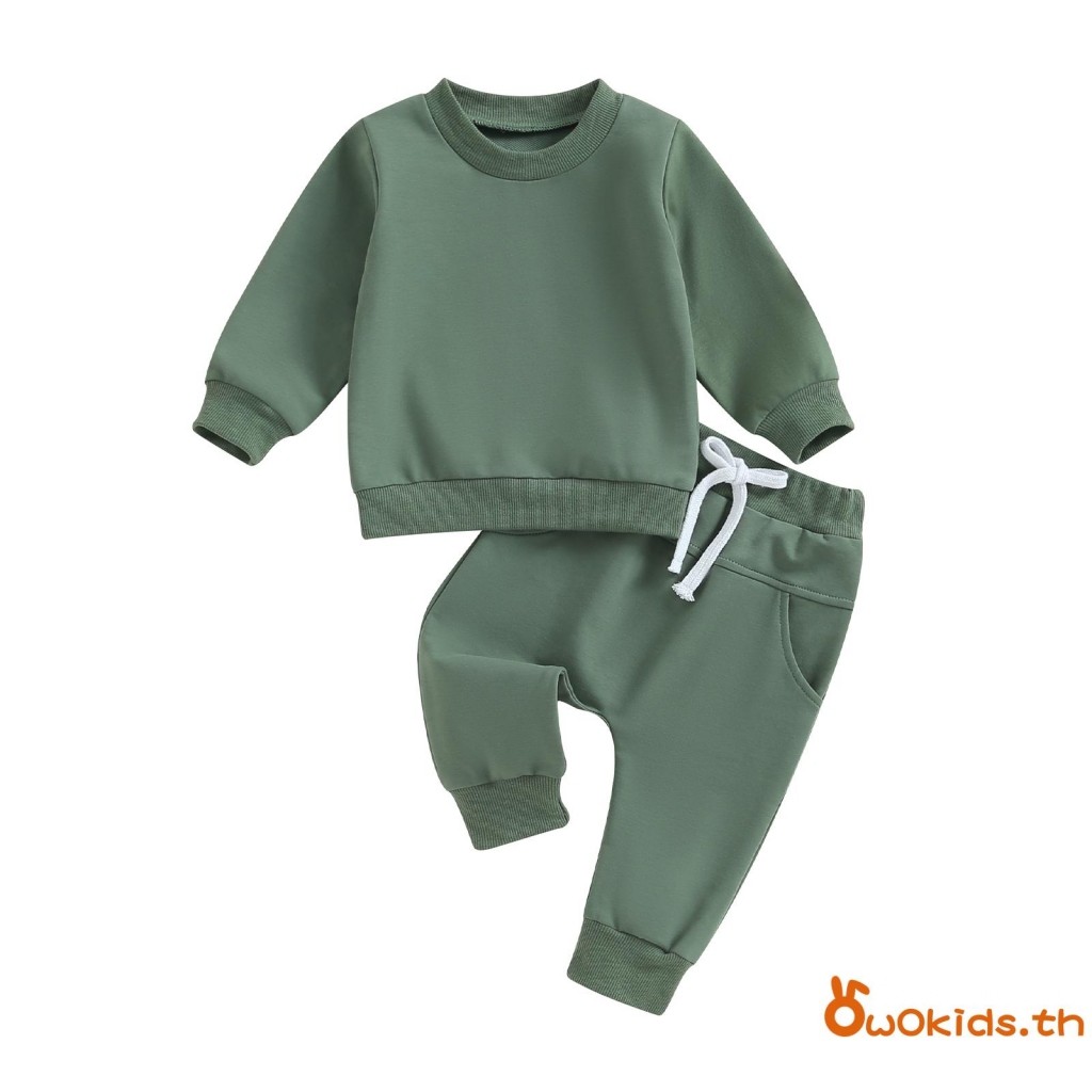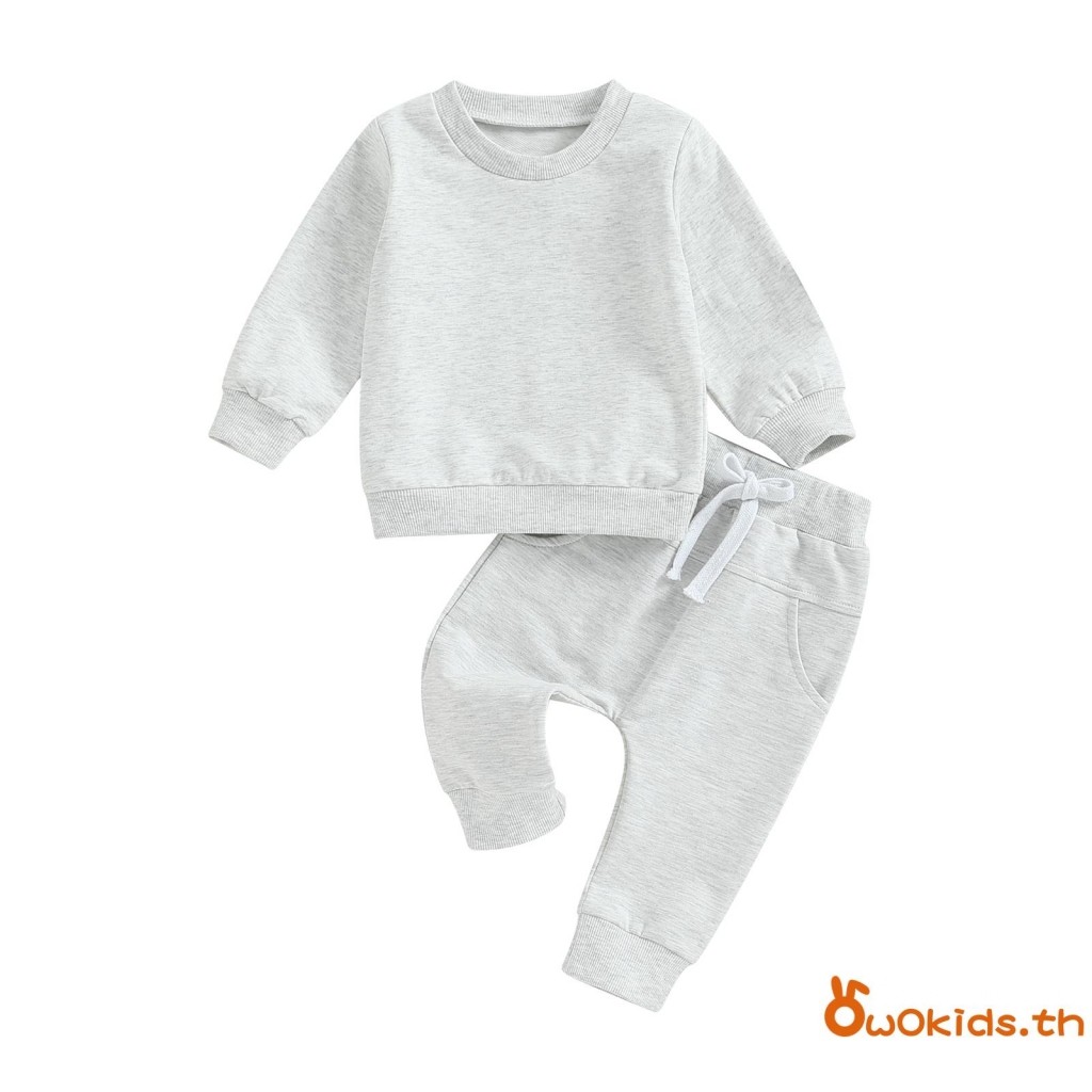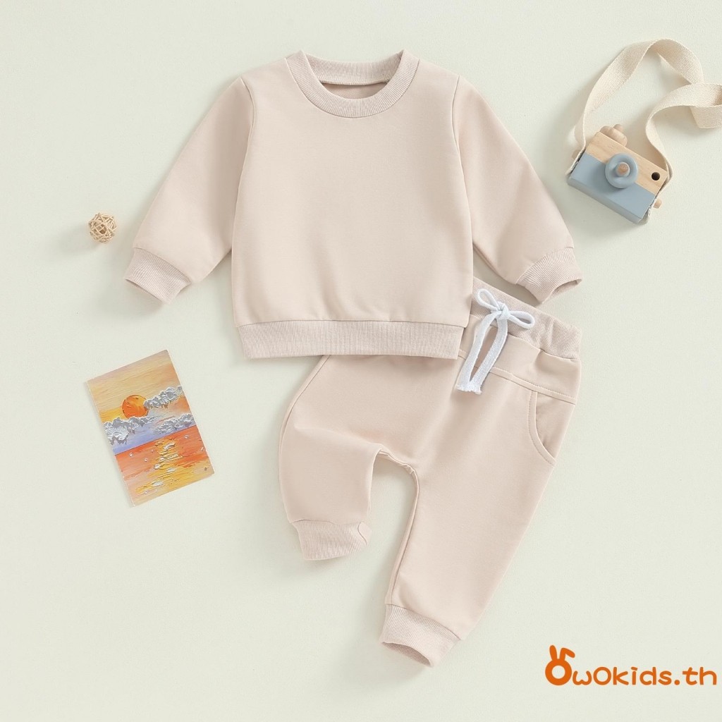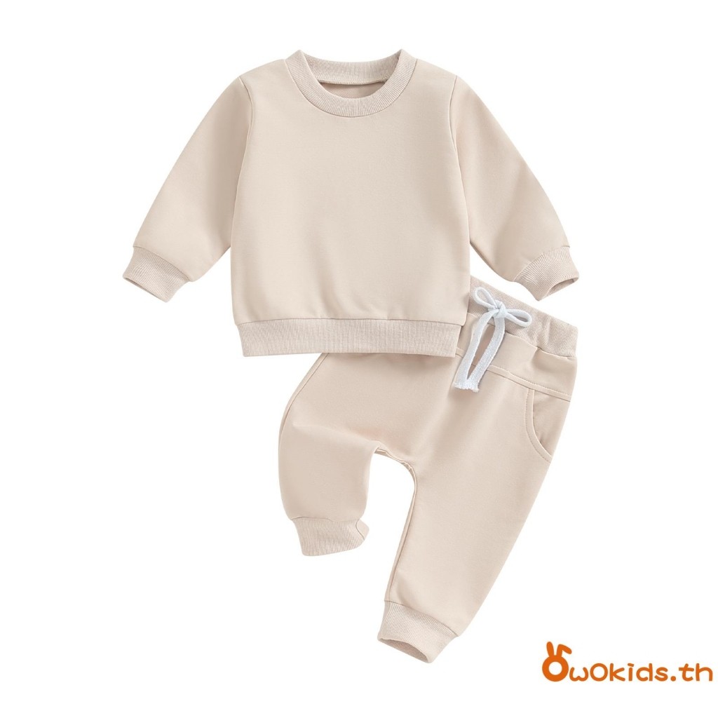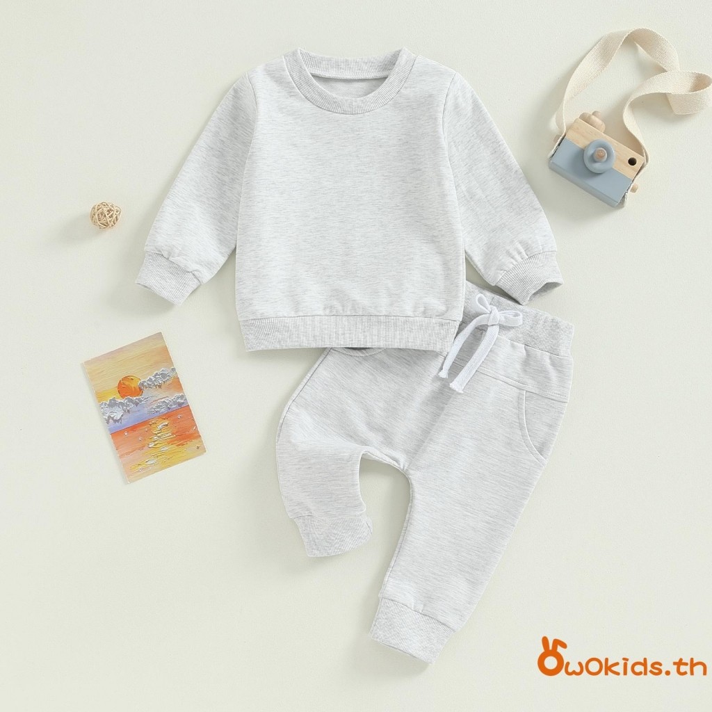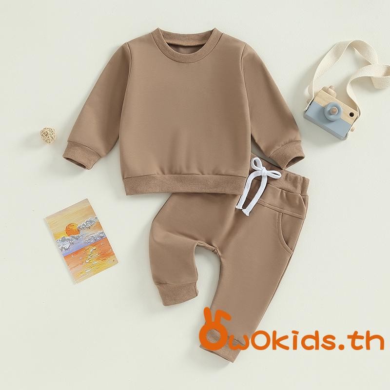 Baby ชุดน่ารัก 2 ชิ้นเสื้อกันหนาวแขนยาวสีทึบและชุดกางเกงยางยืดสําหรับทารกแรกเกิดเสื้อผ้าฤดูใบไม้ร่วง