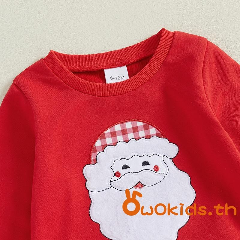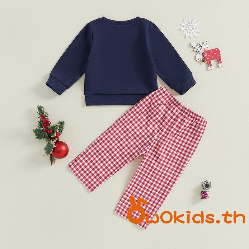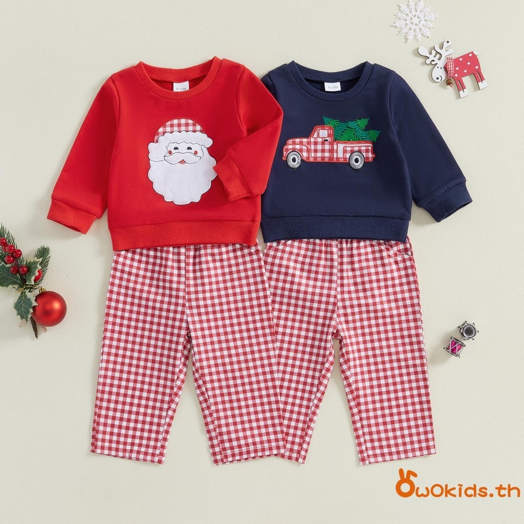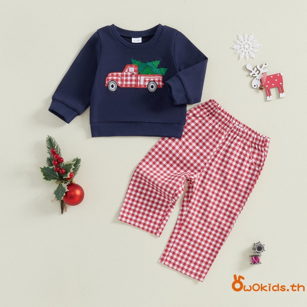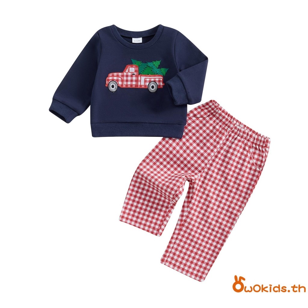 Toddler Boys ชุดคริสต์มาส Santa/รถบรรทุกเย็บปักถักร้อยเสื้อแขนยาวและกางเกงขายาวลายสก๊อต 2 ชิ้นเสื้อผ้าชุด