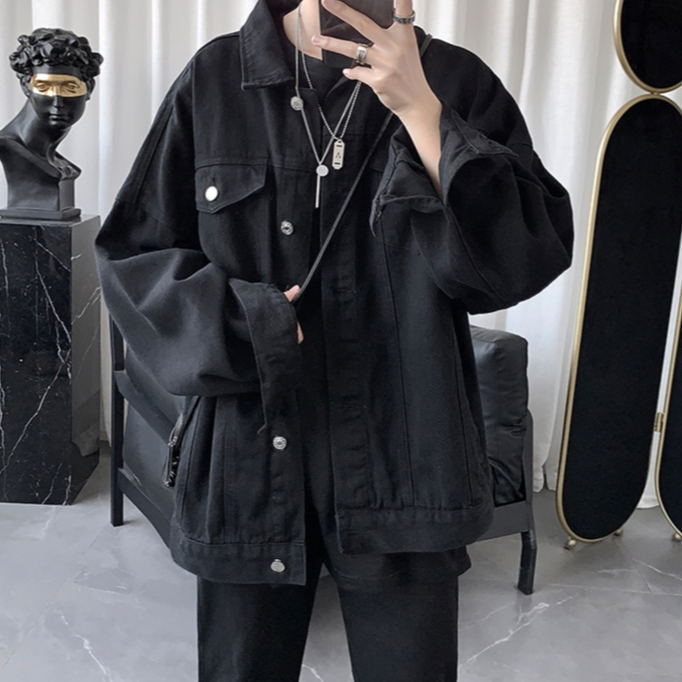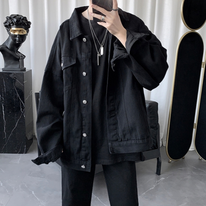 GKSSS เสื้อแจ็คเก็ตยีนส์ผู้ชายย้อนยุคอเมริกันเสื้อทรงหลวมเรียบง่ายสไตล์เกาหลี