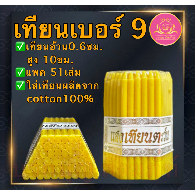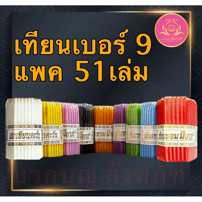 เทียนเบอร์9แพค51เล่ม เทียนทำกระทง เทียนสั้น เทียนไหว้พระ เทียนบริจาค เทียนสี เทียนประจำวันเกิด เทียนไข เทียนขาว เทียนดำ