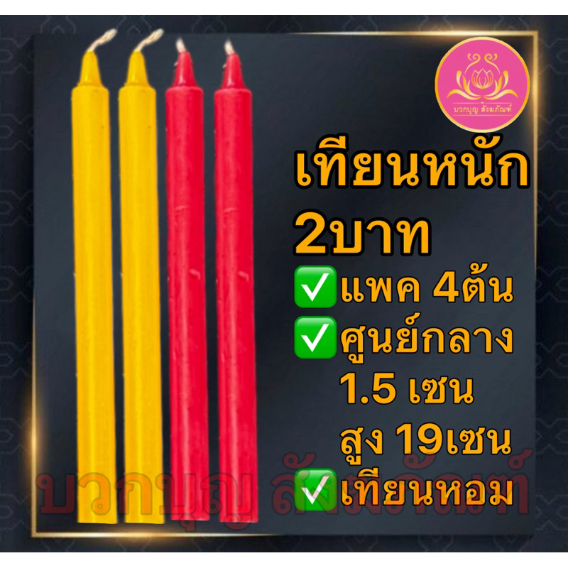 เทียนหนัก2บาท เทียนเหลือง เทียนแดง เทียนขาว เทียนหอม เทียนปาฏิโมกข์ หนัก2บาท เทียน2บาท เทียนไข เทียน