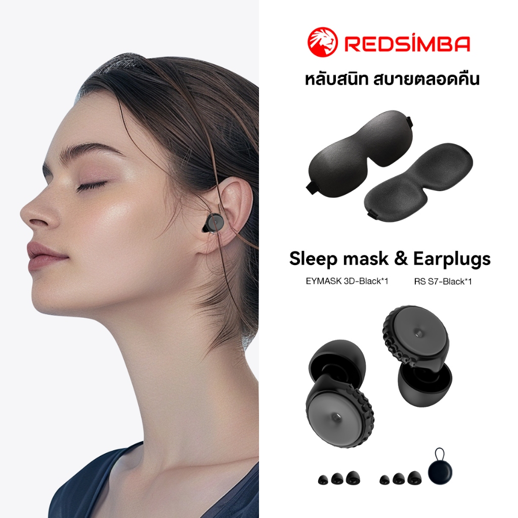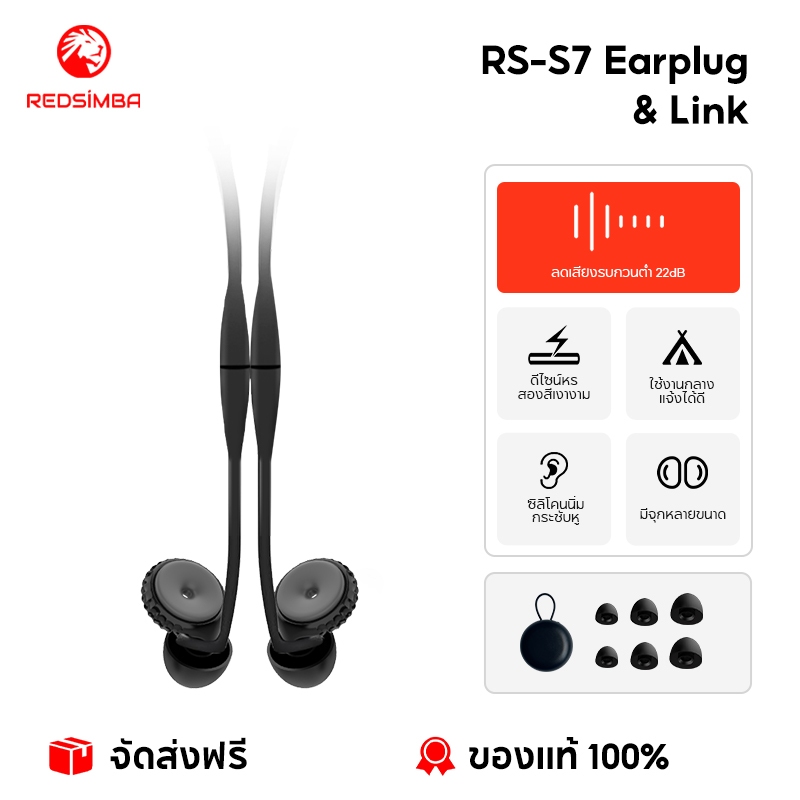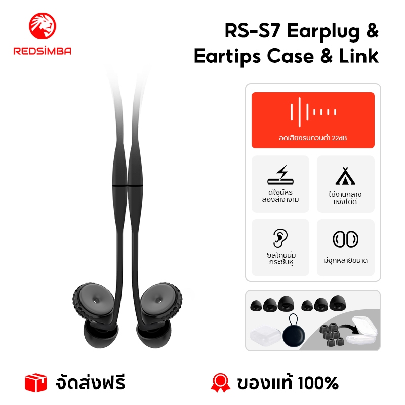 REDSIMBA 22dB RS-S7 ปลั๊กหูลดเสียงรบกวน | บล็อกความถี่ต่ํา 22dB | ล้างทําความสะอาดได้ | ซิลิโคนนิ่ม | หลายขนาด | เหมาะสําหรับการนอนหลับการเดินทางใช้กลางแจ้ง