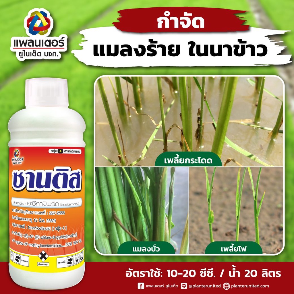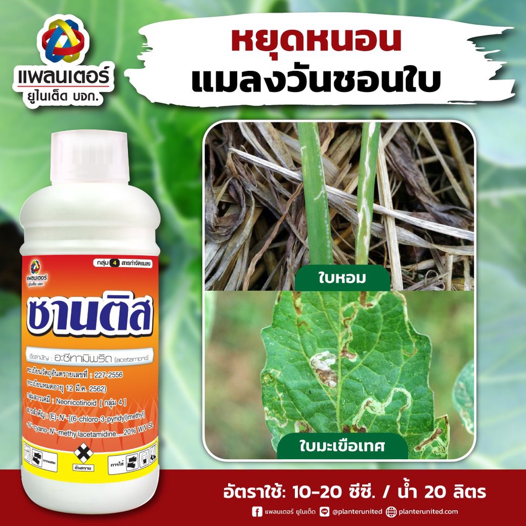 กำจัดเพลี้ย แมงบั่ว เต่าแตง ด้วงหมัดผัก แมลงหวี่ขาว ซานติส (อะเซทามิพริด) บริษัท แพลนเตอร์ ยูไนเต็ด จำกัด